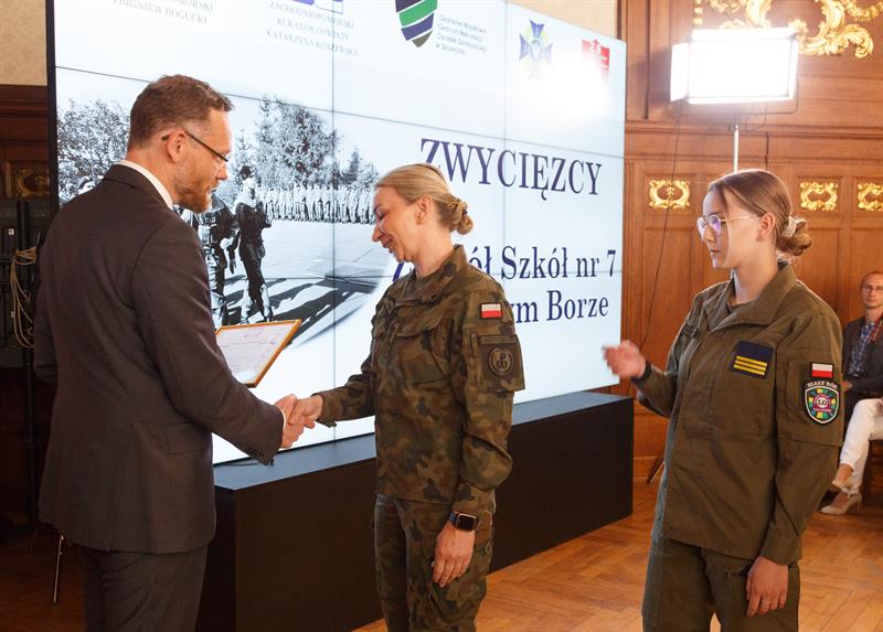 Uhonorowano również młodzież za zmagania w Zachodniopomorskiej Lidze Klas Mundurowych, na którą składały się w tym roku szkolnym trzy konkursy: Zachodniopomorski Przegląd Musztry Klas Mundurowych, Turniej Strzelecki Zachodniopomorskiego Kuratora Oświaty oraz Ogólnopolskie Mistrzostwa Klas Mundurowych na Poligonie Drawskim. Zwycięzcami zostali kadeci z Zespołu Szkół nr 7 w Białym Borze, drugie miejsce dzierżą dwie szkoły: Zespół Szkół im. Pamięci Ofiar Terroryzmu 11 Września 2001 Roku z Kalisza Pomorskiego i II Liceum Ogólnokształcące im. C.K. Norwida w Stargardzie. Drużyna z Centrum Edukacji „Zdroje” w Szczecinie zdobyła trzecie miejsce.©℗
