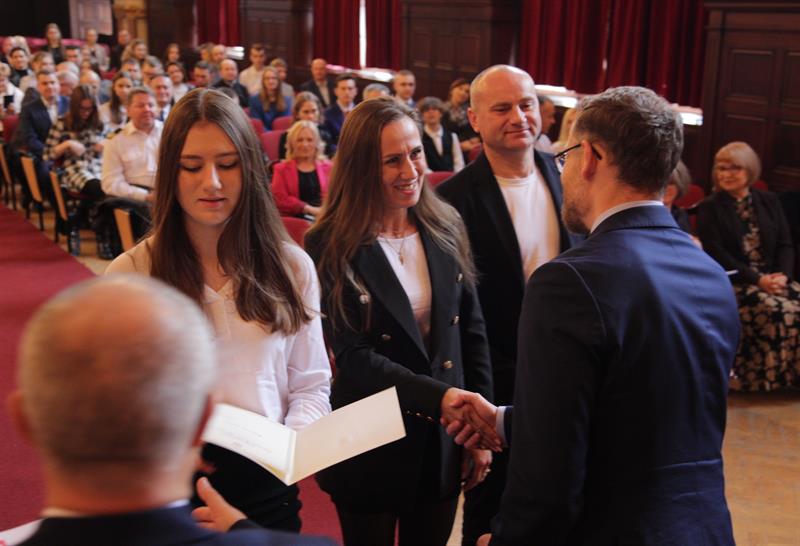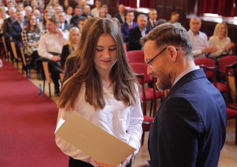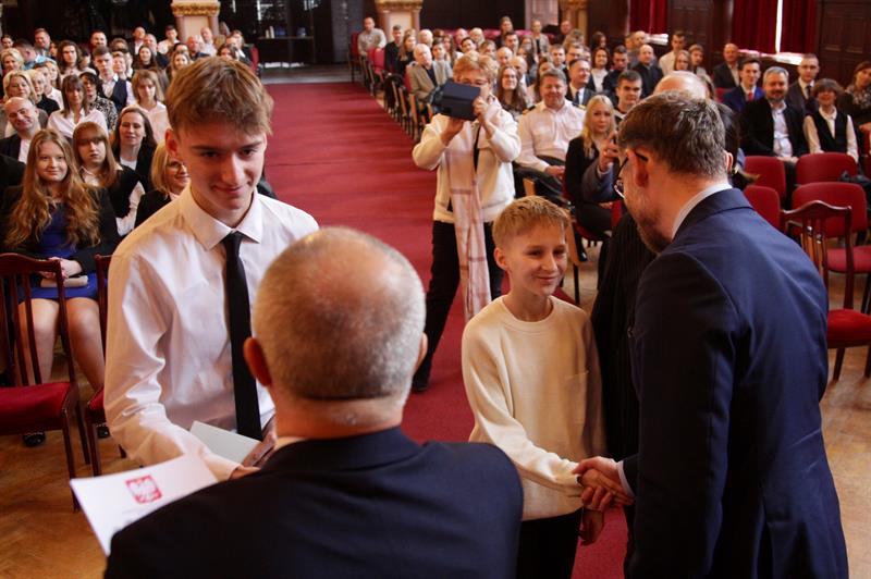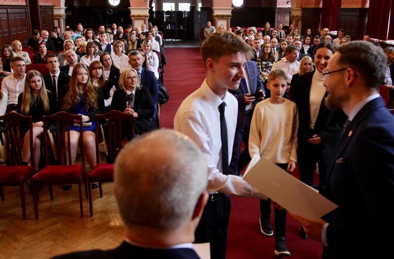 256 uczniów zachodniopomorskich szkół otrzymało stypendia Prezesa Rady Ministrów za szczególne osiągnięcia w nauce. Zaszczytne wyróżnienia - w imieniu premiera Mateusza Morawickiego - wręczyli uzdolnionej młodzieży wojewoda Zbigniew Bogucki oraz Jerzy Sołtysiak, p.o. Zachodniopomorskiego Kuratora Oświaty.
