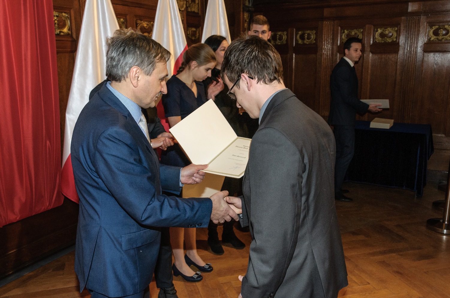 - W imieniu pani Prezes Rady Ministrów Beaty Szydło, chciałem serdecznie pogratulować wszystkim stypendystom - mówił podczas gali podsekretarz M. Kopeć. Obiecał, że ministerstwo postara się o większe środki na rozwój utalentowanych uczniów.