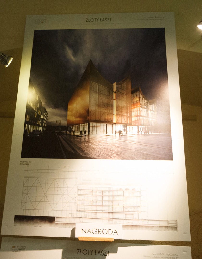 Hubertowi Piekarczykowi za pracę „Centrum innowacji i aktywności społecznej w Szczecinie – «Złoty Łaszt»” wykonaną pod kierunkiem dr hab. inż. arch. Piotra Arleta na Wydziale Budownictwa i Architektury ZUT – przypadła jako zwycięzcy nagroda w wysokości 6000 zł brutto. Opiekunowi nagrodzonej pracy przyznano nagrodę 2000 zł brutto.