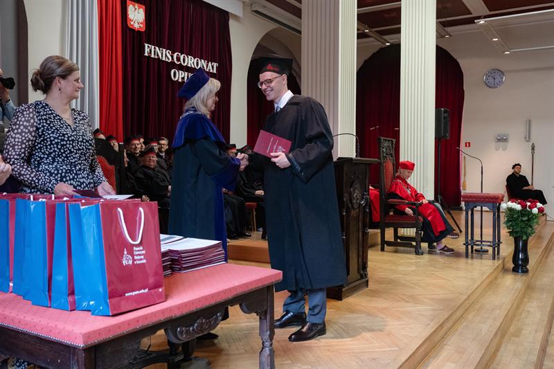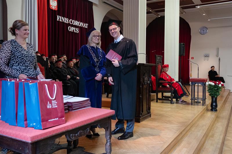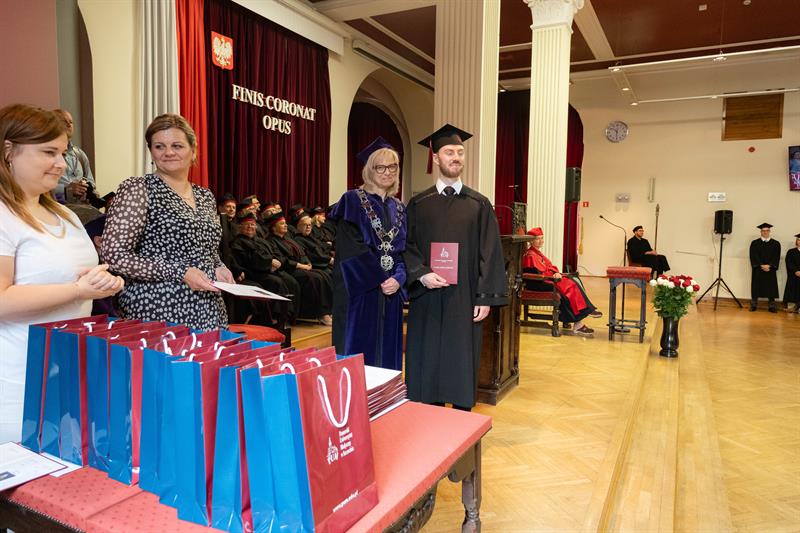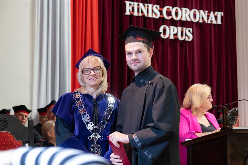- Chciałbym być specjalistą chorób wewnętrznych - zdradził nam Patryk Rzeczycki, jeden z tegorocznych absolwentów PUM, obecny na uroczystości. - Jest to bardzo rozległa dziedzina, niezmiernie fascynująca, która obejmuje całego człowieka - „od stóp do głów”. Udzielam się w kołach naukowych, wolontariatach i jestem blisko tej dziedziny na co dzień, żeby w przyszłości być przygotowanym, przynajmniej częściowo, do tej specjalizacji.