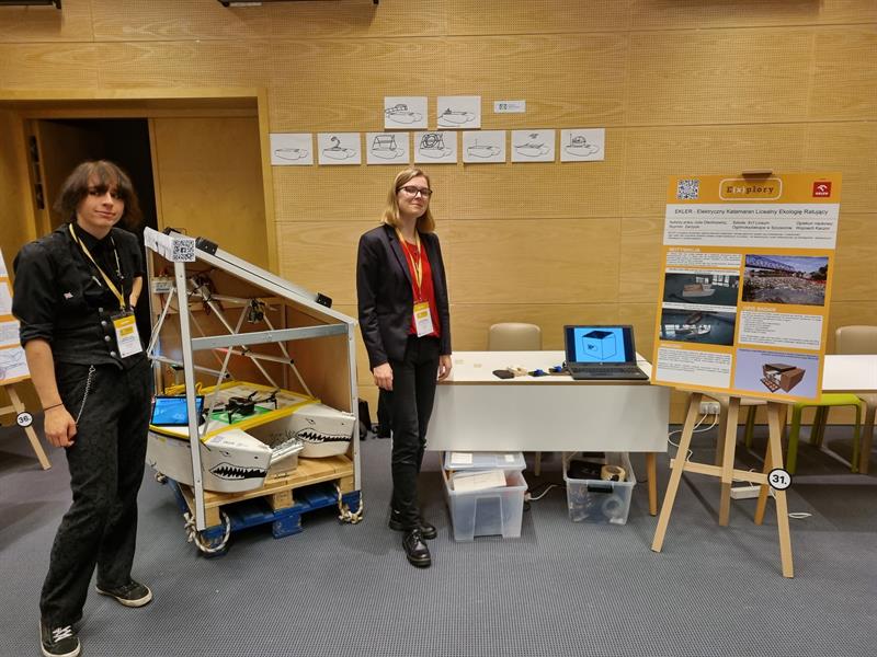 Julia Olechnowicz i Szymon Zarzycki, uczniowie XVI Liceum Ogólnokształcącego do Gdyni pojechali z projektem pływającej platformy w formie katamaranu, która może transportować na przykład urządzenia pomiarowe do monitorowania stanu wód i dbania o ich czystość.