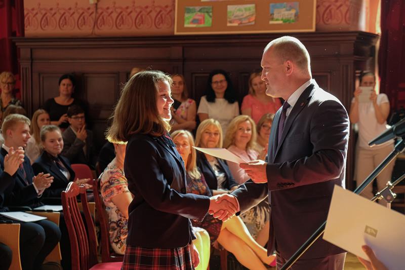 Uroczyste wręczenie nagród prezydenta Szczecina dla uzdolnionych uczniów uczęszczających do szczecińskich szkół odbyło się we wtorek w auli I Liceum Ogólnokształcącego. Otrzymało je 619 osób ze szkół podstawowych, gimnazjów oraz szkół ponadgimnazjalnych.