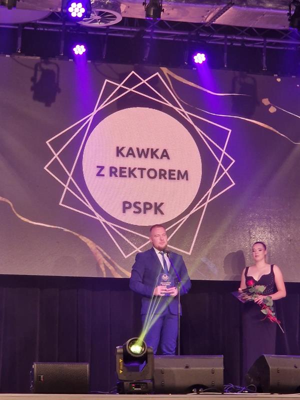 Nagrodę za projekt „Kawka z rektorem” odebrał Michał Gidelski, przewodniczący Parlamentu Studentów Politechniki Koszalińskiej.
