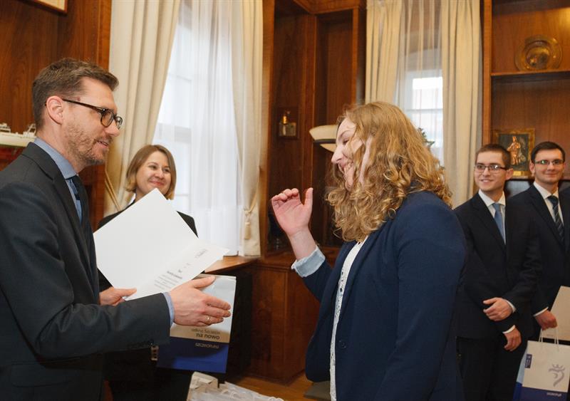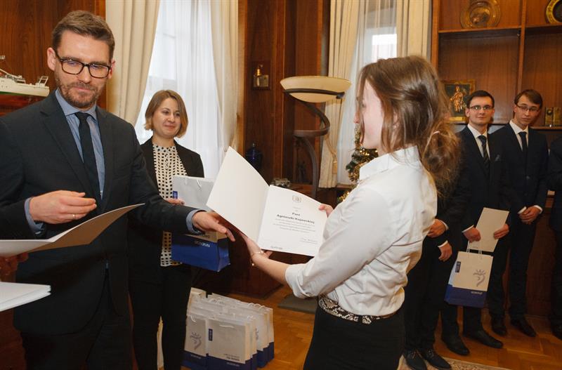- To pierwsza edycja programu, więc jest szczególnie dla nas ważna - mówił zastępca prezydenta Michał Przepiera, który wręczał studentom dyplomy gratulacyjne. - Bardzo się cieszymy, że mamy do czynienia z ludźmi młodymi, którzy mają sukcesy i kierują swoje kroki na szczecińskie uczelnie. Mam nadzieję, że ten dzień będzie dla Państwa (studentów - red.) ważny z punktu widzenia życia osobistego, a już za chwilę naukowego i zawodowego.