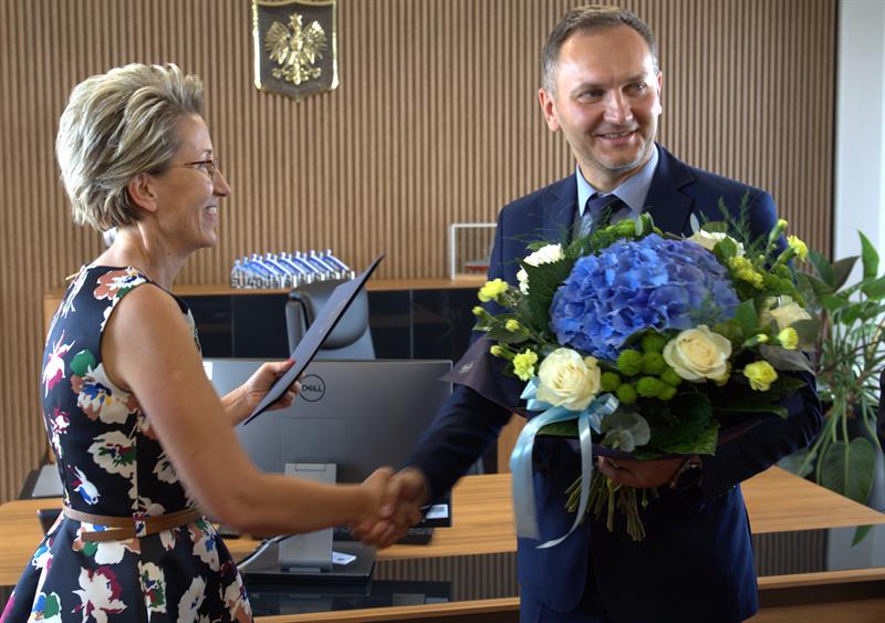 Przekazując gratulacje, życzyła ciekawych wyzwań i satysfakcjonującej pracy. Podkreśliła, że współpracownicy z uczelni są dumni z awansu. Wyraziła przekonanie, że w pracy rządowej dr Rafał Rosiński będzie hołdował zasadzie, w myśl której ważne rzeczy dzieją się nie tylko w stolicy. I, podobnie jak w działalności w samorządzie województwa, nie będzie zapominał o sprawach uczelni (jako radny wojewódzki czynił starania o uruchomienie programu stypendiów marszałka dla studentów).