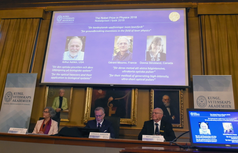 Arthur Ashkin, Gerard Mourou i Donna Strickland zostali tegorocznymi laureatami Nagrody Nobla w dziedzinie fizyki - ogłosił we wtorek w Sztokholmie Komitet Noblowski. Badaczy doceniono za przełomowe wynalazki z zakresu fizyki laserów.