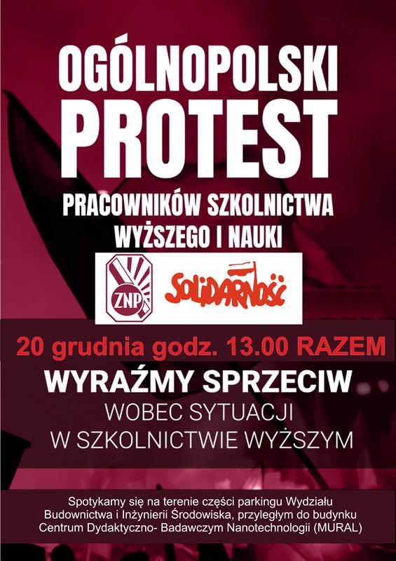 W poniedziałek w godz. 13- 13.45 w Szczecinie na terenie parkingu Wydziału Budownictwa i Inżynierii Środowiska Zachodniopomorskiego Uniwersytetu Technologicznego, przyległym do budynku Centrum Dydaktyczno-Badawczego Nanotechnologii przy al. Piastów 45, odbędzie się pikieta. Jej celem jest wyrażenie sprzeciwu wobec sytuacji związanej z finansowaniem szkolnictwa wyższego. To wydarzenie zorganizowane przez Związek Nauczycielstwa Polskiego i Komisję Zakładową NSZZ "Solidarność" w ZUT. Jest częścią ogólnopolskiego protestu pracowników szkolnictwa wyższego i nauki.
