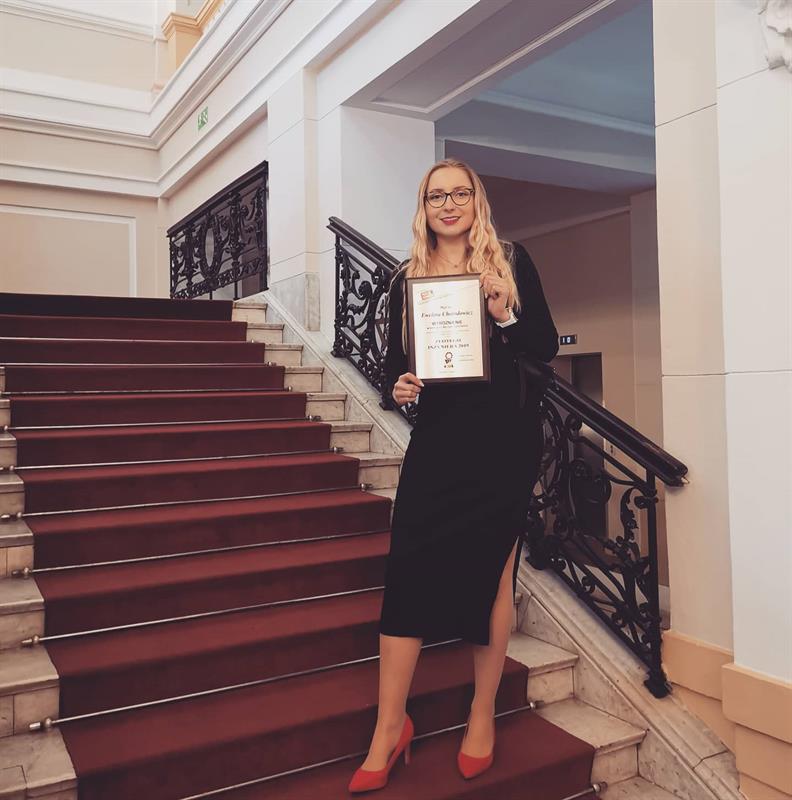 Jury konkursowe doceniło wybitne osiągnięcia naukowe Eweliny Chołodowicz, m.in. współautorstwo 10 artykułów naukowych, pierwszą nagrodę za pracę inżynierską w ogólnopolskim konkursie „Młodzi Innowacyjni 2018”, udział w projektach „Najlepsi z najlepszych 3.0”, stypendium Ministra i Nauki Szkolnictwa Wyższego oraz Prezydenta Miasta Szczecin.