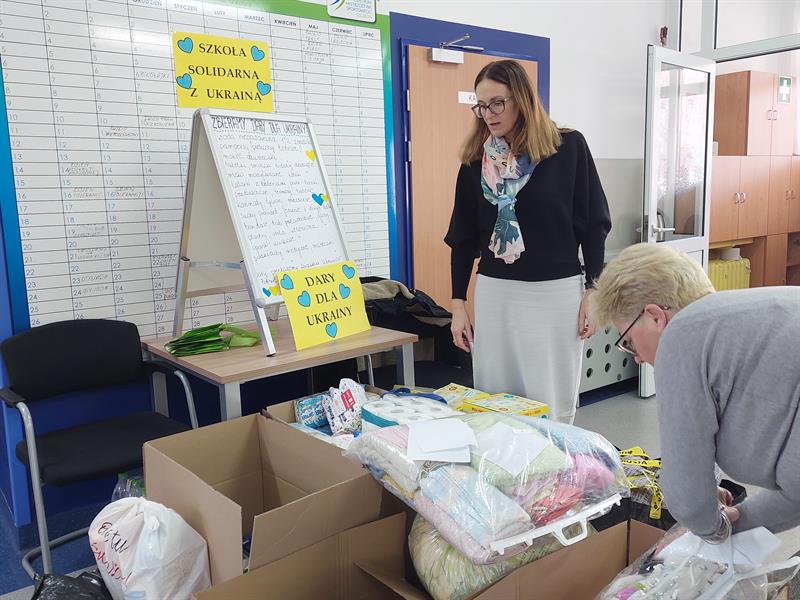– Dzieci przynoszą wypełnione po brzegi reklamówki: przybory toaletowe, gumowe rękawiczki, bandaże, opatrunki. Jest ogromny odzew – stwierdza Magdalena Zawacka – Walczak, dyrektor tej placówki. – Zbieramy to, co przyda się uchodźcom i tym, którzy zostali, by bronić kraju. W przyszłym tygodniu zamierzamy zorganizować zbiórkę artykułów szkolnych. Wszystko przekażemy Związkowi Ukraińców.