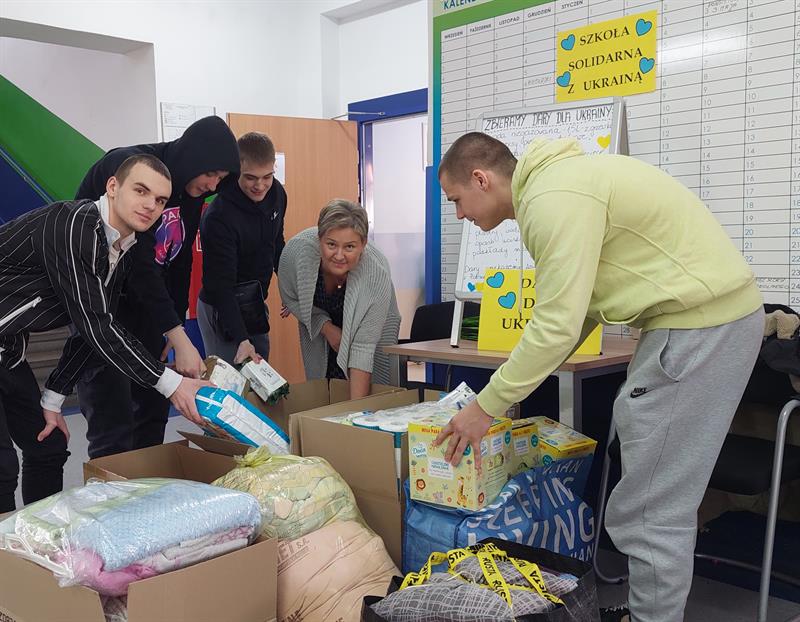 Tu w zbiórkę najpotrzebniejszych produktów zaangażowali się wszyscy. Uczniowie przynoszą pieluchy, mleko, kaszki dla najmłodszych oraz latarki, artykuły medyczne, powerbanki, termosy, opatrunki dla walczących. Nauczyciele i pracownicy administracji otworzyli nie tylko serca, ale i portfele – utworzyli zbiórkę pieniędzy, które przekażą Związkowi Ukraińców w Szczecinie, podobnie jak pomoc rzeczową. Na tym wsparcie szkoły się nie kończy.