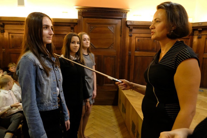 Pasowanie uczniów pierwszej klasy odbyło się we wtorek w Państwowej Szkole Muzycznej I stopnia im. Tadeusza Szeligowskiego w Szczecinie. Dyrektor szkoły Anna Tarnowska pasowała pierwszaki, jak na przyszłych muzyków przystało, smyczkiem.