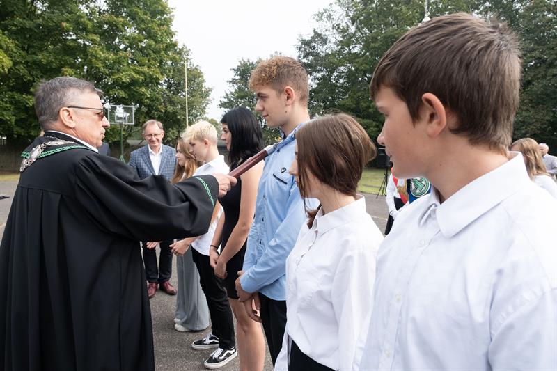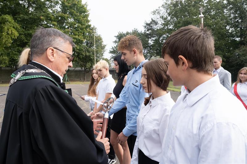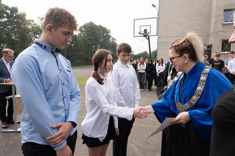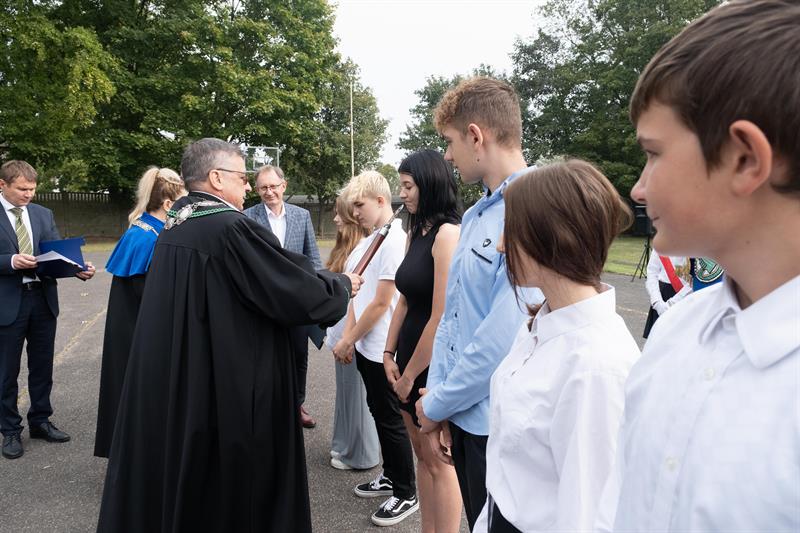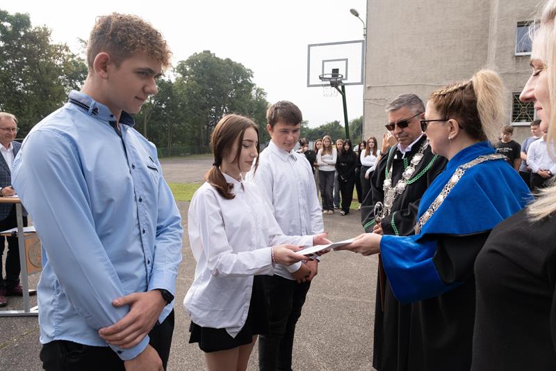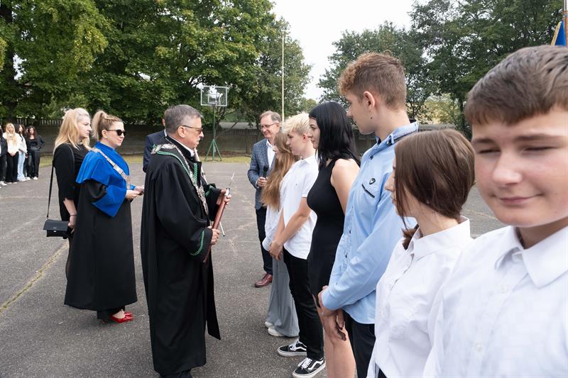W uroczystości ślubowania pierwszaków uczestniczyli nie tylko wszyscy uczniowie szkoły i grono pedagogiczne, ale także goście - przedstawiciele Zachodniopomorskiej Izby Rzemiosła i Przedsiębiorczości, Starszy Cechu Rzemiosł Metalowych i Elektrycznych, delegacja Ochotniczych Hufców Pracy oraz reprezentanci firm współpracujących ze szkołą, którzy mają również wkład w praktyczną naukę zawodu.