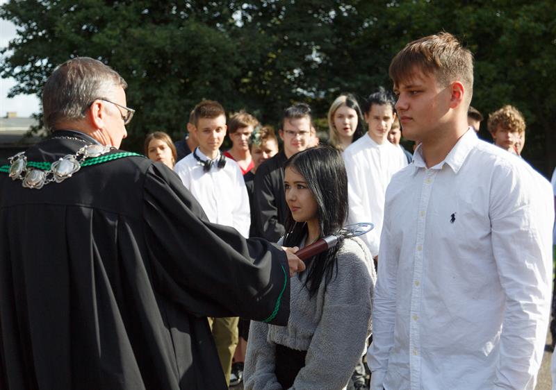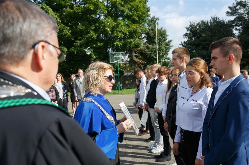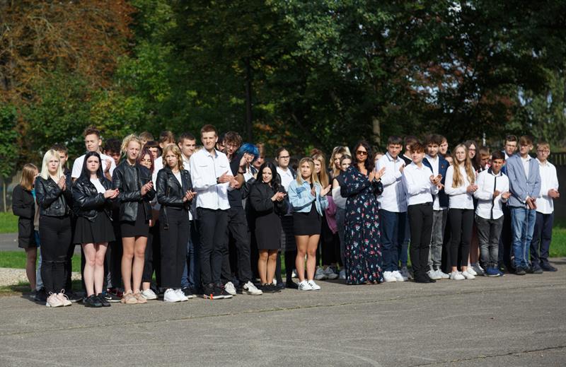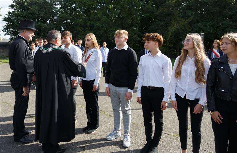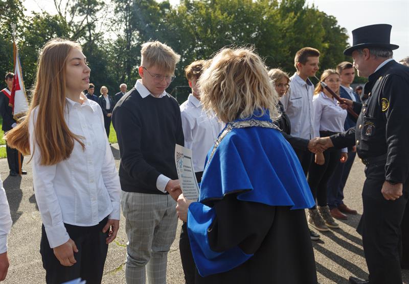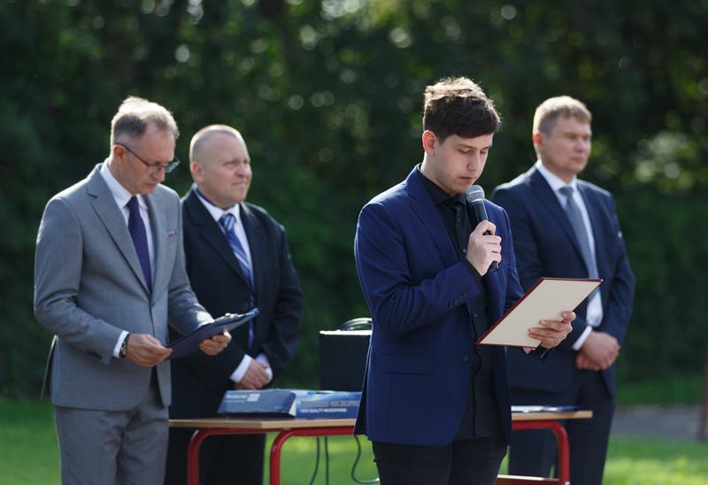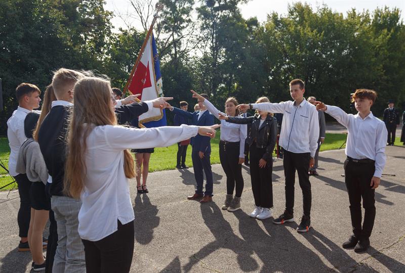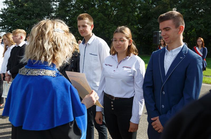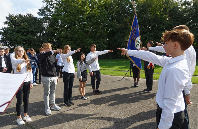 Uroczyste pasowanie zgromadziło na szkolnym boisku uczniów wszystkich klas pierwszych. Ślubowanie na sztandar szkoły, w ich imieniu, złożyło dziesięciu uczniów reprezentujących klasy pierwsze: Natalia Warkowska, Damian Mika, Marcel Leśniewski, Oktawia Wardyńska, Aleksandra Araszewska, Dominik Pająk, Kamila Wasikowska, Kordian Tomaszewski, Julia Gołoś, Dawid Zamłyński.