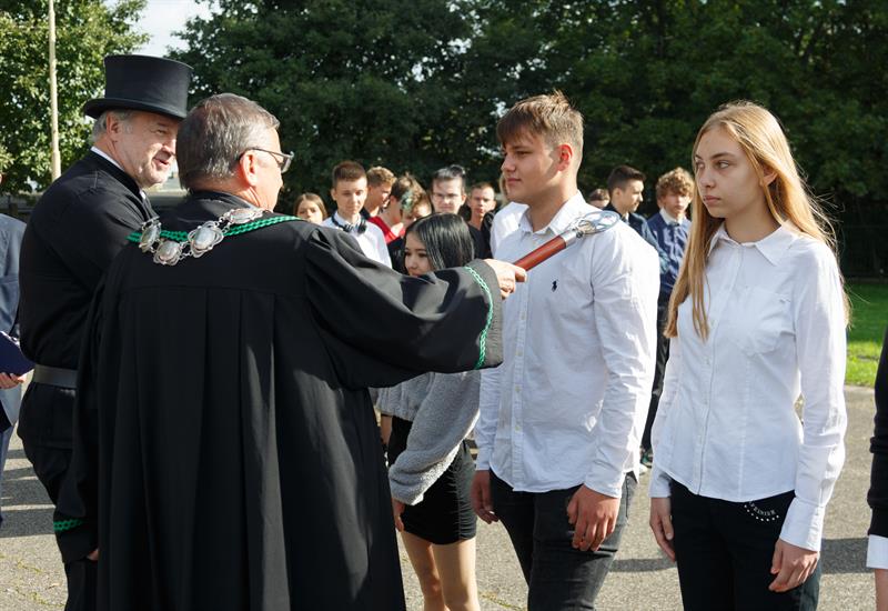 Przyszłych rzemieślników pasował Grzegorz Mozga, Starszy Cechu Rzemiosł Metalowych i Elektrycznych Izby Rzemieślniczej Małej i Średniej Przedsiębiorczości w Szczecinie. Na uroczystości obecni byli także przedstawiciele Zachodniopomorskiej Izby Rzemiosła i Przedsiębiorczości. Szczeciński magistrat reprezentował Grzegorz Janowski, z-ca dyrektora Wydziału Oświaty.©℗