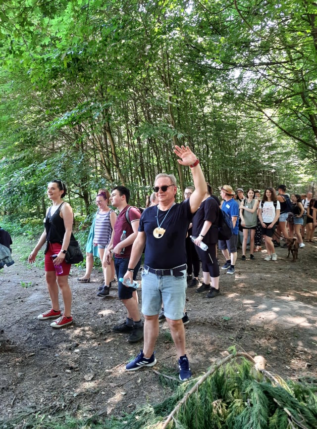 Prowadził on także rajd przez Las Arkoński w towarzystwie prorektora WSH TWP dr Cezarego Hendryka. W gronie ponad setki uczestników nie zabrakło władz uczelni, dziekanów, wykładowców oraz studentów, nie tylko wiodących kierunków uczelni, ale nawet Uniwersytetu Trzeciego Wieku oraz Dziecięcego Uniwersytetu Humanistycznego. Każdy szedł we własnym tempie, niektórzy z kijkami nordic walking, a chętni wybrali rowery i hulajnogi. Wszystkim towarzyszył dobry humor i radość ze wspólnego spotkania. Punktem docelowym była Polana Miodowa, gdzie każdy uczestnik z rąk prorektora dr Cezarego Hendryka otrzymał medal. Tam na przybyłych czekało ognisko z kiełbaskami i wiele atrakcji: konkursy, zabawy, loteria z nagrodami ufundowanymi przez rektora. - Cieszy nas ten wspólny czas, który niech będzie preludium do wakacji i nowego roku akademickiego - przyznał rektor.