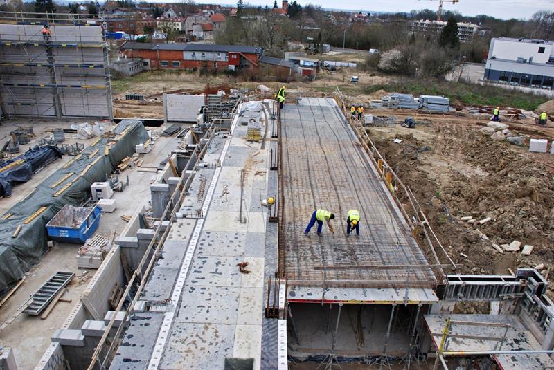 Obecnie trwają roboty żelbetowe w budynku hali sportowej. Natomiast w budynku szkoły postępuje murowanie ścianek działowych i prace tynkarskie. Trwa także montaż okien oraz wykonywane są kanały pod kable elektryczne i kanały wentylacyjne. Na ukończeniu są prace związane z wykonaniem drenażu i wkrótce rozpoczną się roboty przy zewnętrznych instalacjach sanitarnych. Jak informuje Piotr Zieliński koszt inwestycji wynosi ponad 59 mln zł. Prace powinny się zakończyć we wrześniu tego roku. Nadzór nad realizacją inwestycji sprawuje Wydział Inwestycji Miejskich Urzędu Miasta Szczecin. ©℗