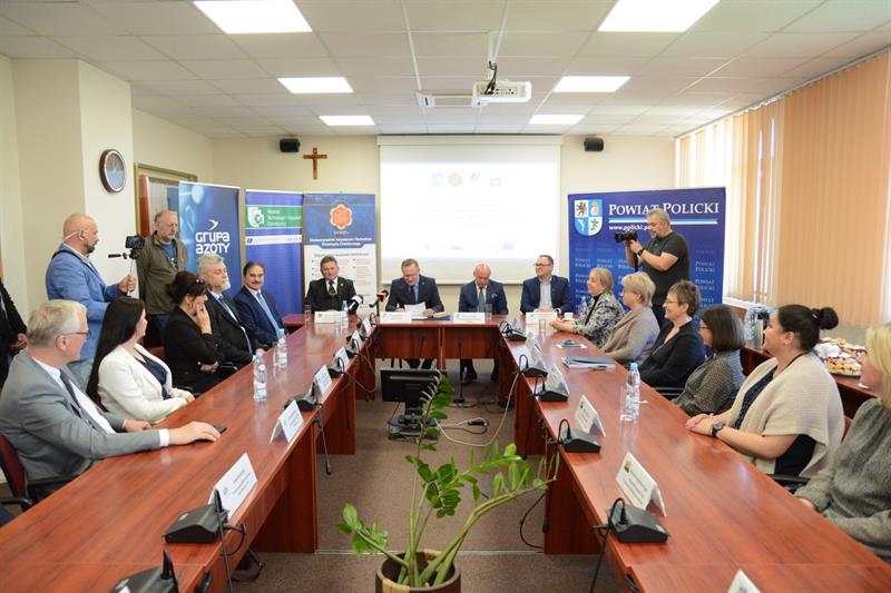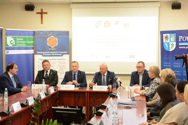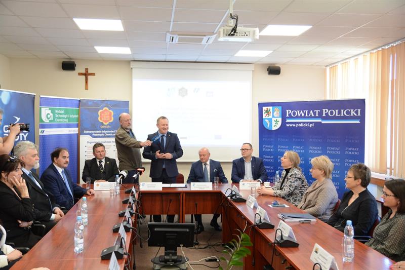 W siedzibie Starostwa Powiatowego w Policach odbyło się spotkanie inaugurujące realizację projektu pod nazwą „Branżowe Centrum Umiejętności w dziedzinie przemysłu chemicznego w Zespole Szkół im. Ignacego Łukasiewicza w Policach”. W wydarzeniu oprócz przedstawicieli Starostwa Powiatowego w Policach (lidera projektu) udział wzięli przedstawiciele partnerów projektu: Stowarzyszenia Inżynierów i Techników Przemysłu Chemicznego, Zachodniopomorskiego Uniwersytetu Technologicznego w Szczecinie, Grupy Azoty Zakłady Chemiczne „Police” SA oraz przedstawiciele realizatora projektu: Zespołu Szkół im. I. Łukasiewicza w Policach. Byli też przedstawiciele Grupy Azoty Polyolefins SA oraz Grupy Azoty Police Serwis sp. z o.o.