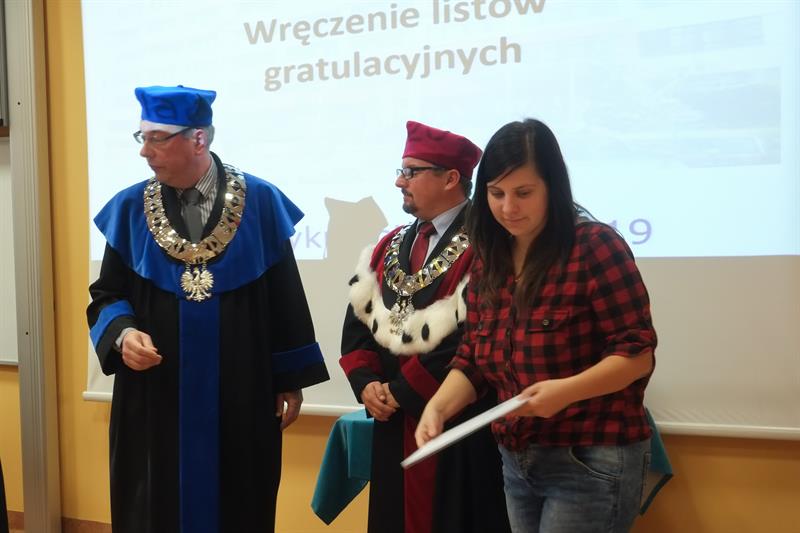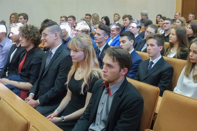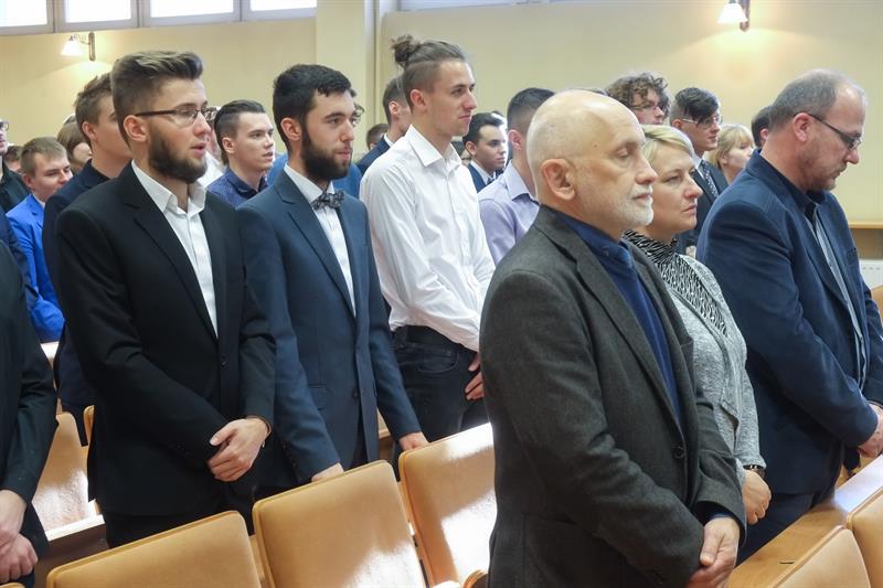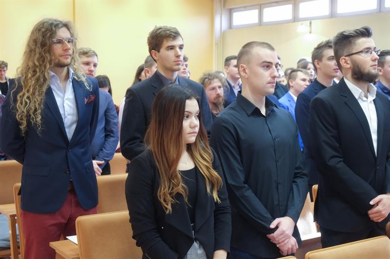 Nowi studenci złożyli uroczyste ślubowanie i wysłuchali pieśni „Gaudeamus igitur”. Wcześniej siedmioro wyróżniających się otrzymało listy gratulacyjne od rektora i dziekana.