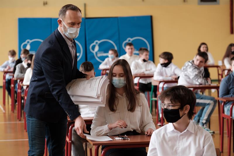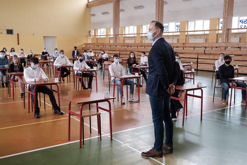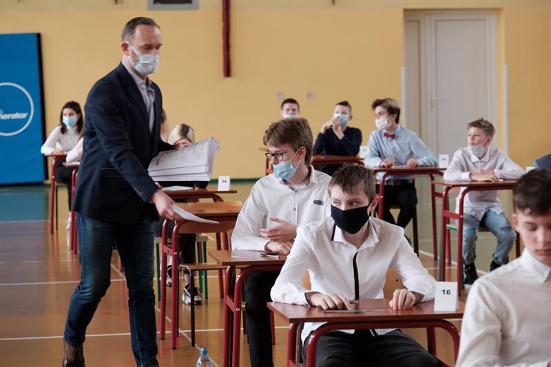 - Do próbnego egzaminu przystąpiło pięćdziesięciu uczniów. Mamy dużą salę gimnastyczną, w której możemy zachować odstęp między ławkami, a uczniowie wiedzą, że muszą mieć maseczkę, własne przybory szkolne, butelkę wody - dopowiada J. Romankiewicz. - Nikt się nie gromadził w dużych grupach, nikt nie przepychał przy dwóch wejściach do szkoły.