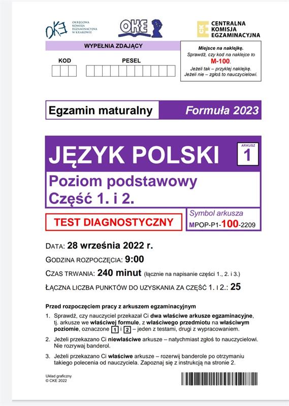 Nową formułę egzaminu maturalnego, jaki będzie obowiązywał już w maju 2023 roku, mieli okazję przećwiczyć uczniowie ostatnich klas liceów i techników. W środę, 28 września pochylili się nad arkuszami z języka polskiego na poziomie podstawowym, które dla województwa zachodniopomorskiego przygotowała Okręgowa Komisja Egzaminacyjna w Poznaniu. Przyszłoroczni maturzyści mieli 240 minut na sprawdzenie swojej wiedzy z ojczystego języka. Test diagnostyczny obejmował 16 zadań, z których jedno było pytaniem o przeżycie katharsis. Należało odwołać się do "Poetyki" Arystotelesa.