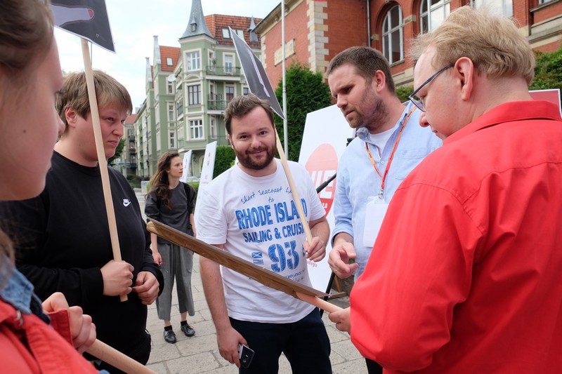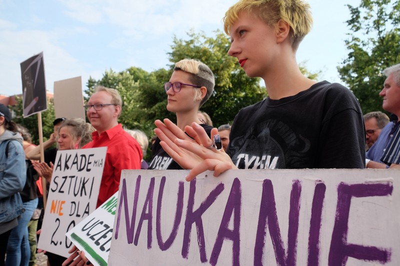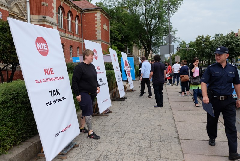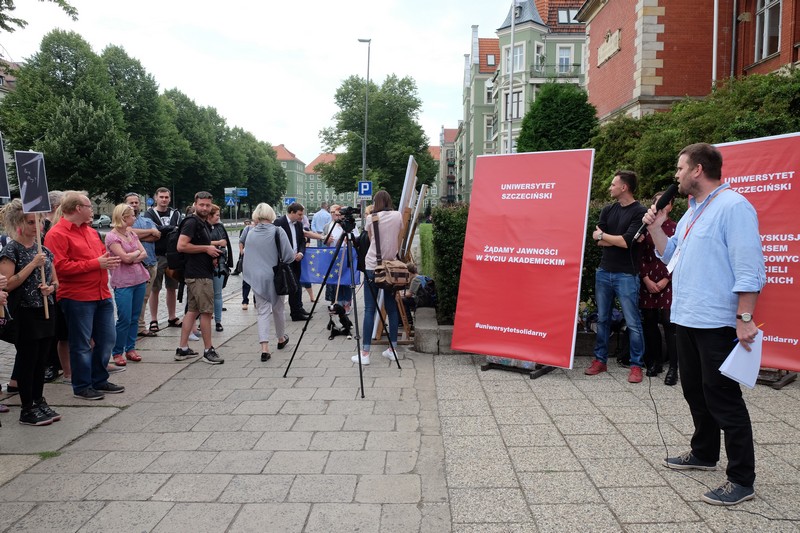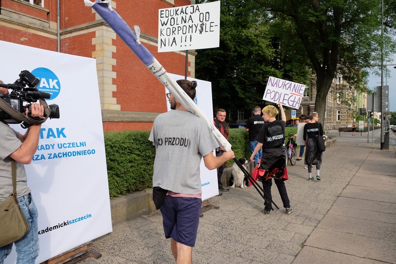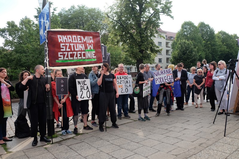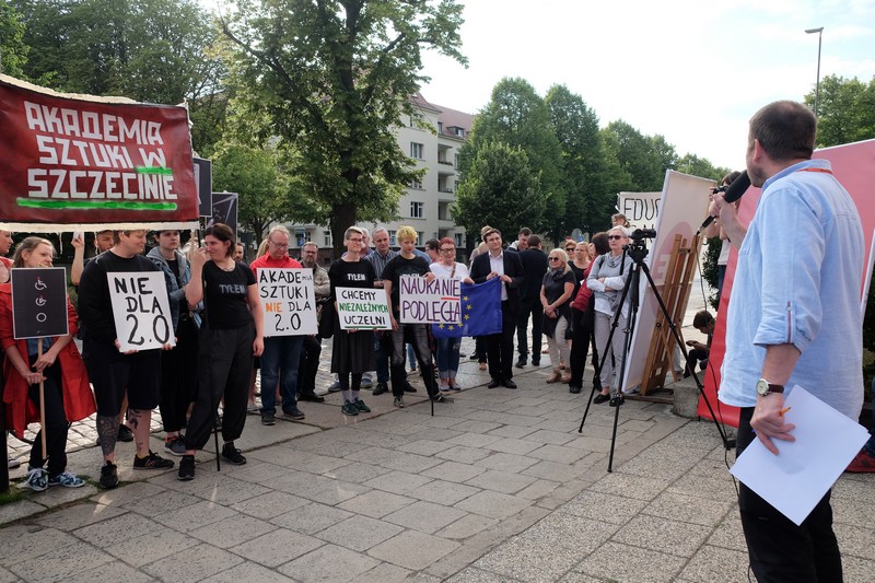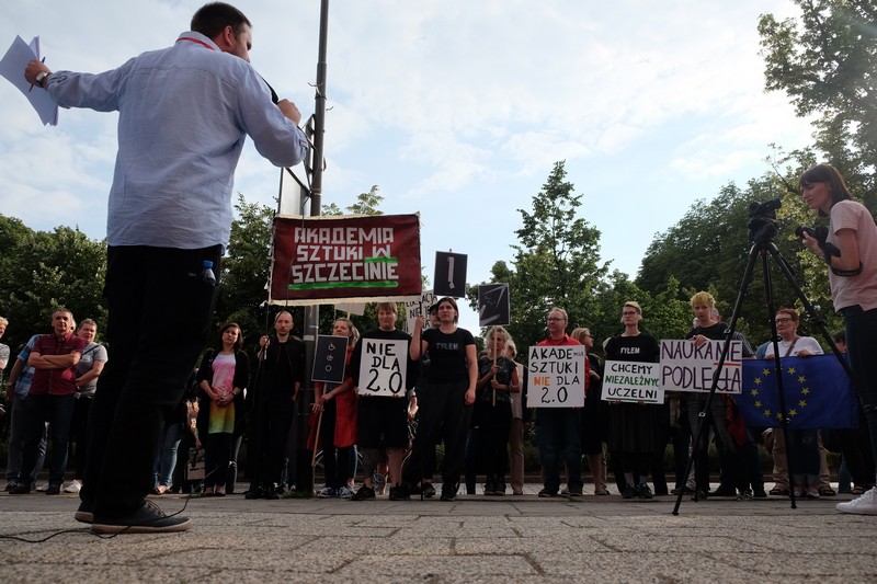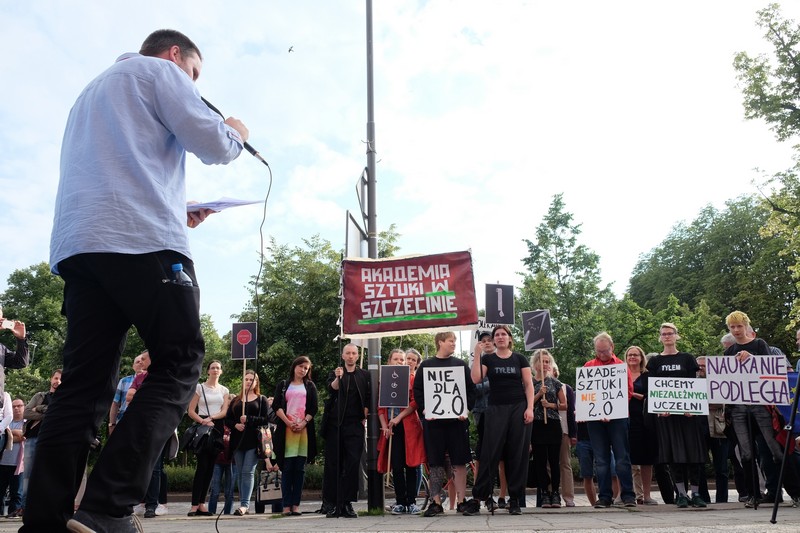 "Żądamy jawności w życiu akademickim", "Nie - dla fikcji reformy" - brzmiały hasła na transparentach. Do protestu dołączyli też studenci Akademii Sztuki, co przyjęto brawami. Sebastian Sahajdak zaproponował stworzenie wspólnej platformy i połączenie sił wszystkich szczecińskich uczelni w następnych protestach.©℗