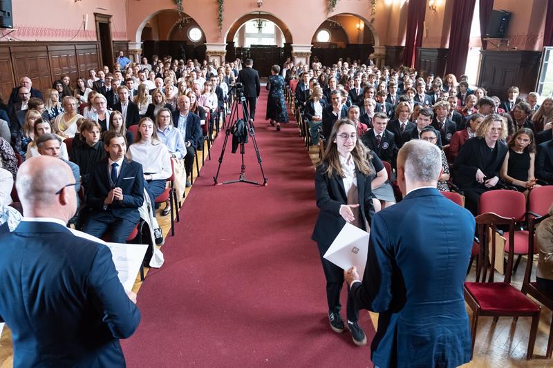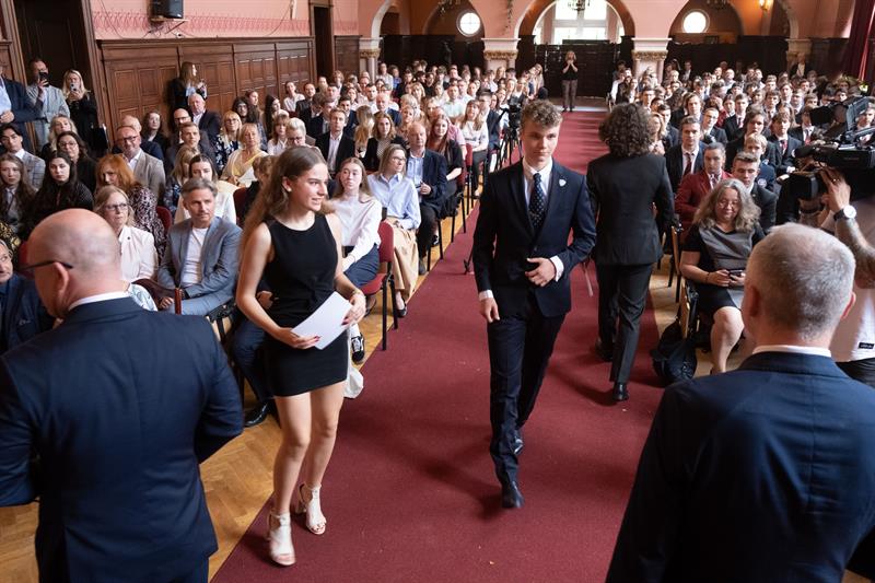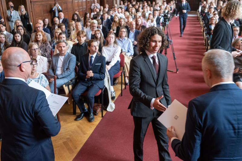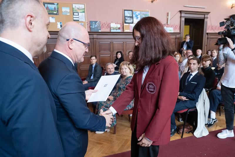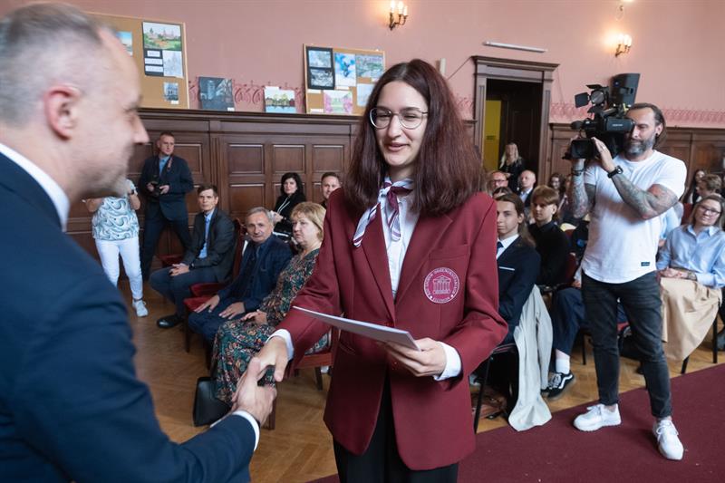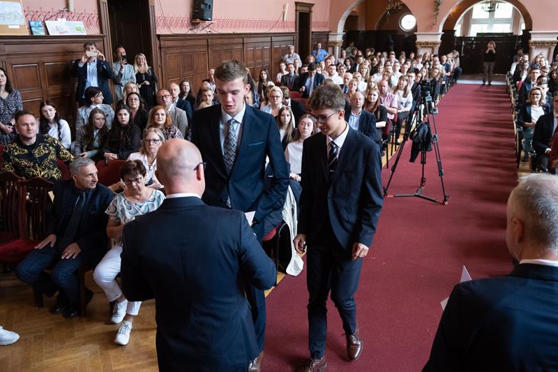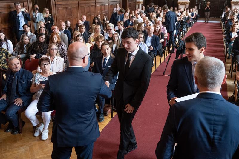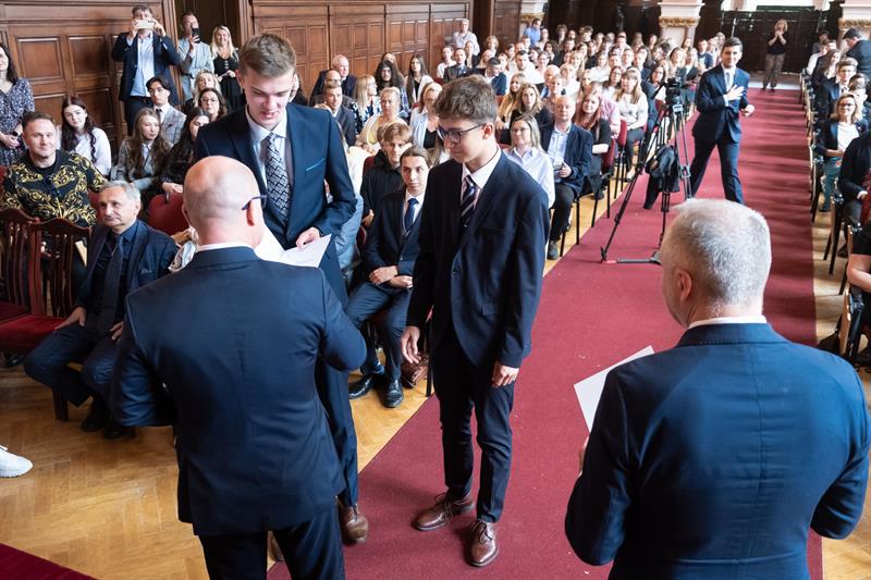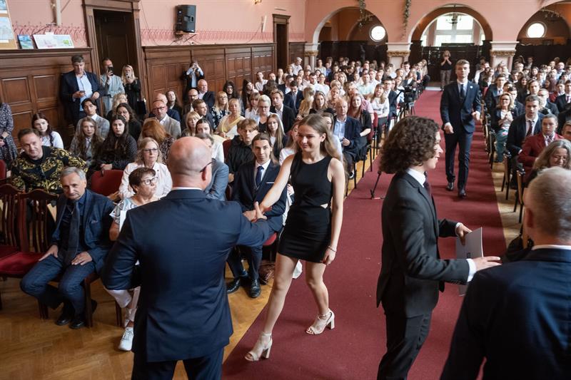 Niemal w przededniu zakończenia roku szkolnego 2023/2024 blisko czterystu uczniów ze szczecińskich szkół - zarówno podstawowych, jak i liceów i techników - otrzymało Nagrody Prezydenta Miasta za doskonałe wyniki w nauce. To nie tylko ci, którzy już za parę dni otrzymają świadectwa z czerwonym paskiem, ale przede wszystkim dzieci i młodzież uczestnicząca w wielu olimpiadach i konkursach oraz zaangażowana społecznie - w pomoc i wolontariat.