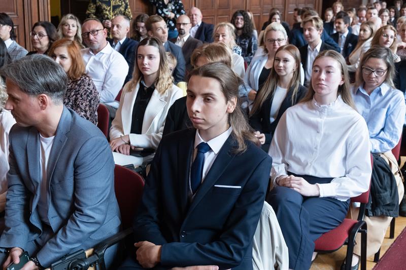 Uroczystość, w której uczestniczyli uczniowie, ich nauczyciele, a także rodzice i dziadkowie - podobnie jak w latach poprzednich - odbyła się w auli I Liceum Ogólnokształcącego im. Marii Skłodowskiej-Curie w Szczecinie.