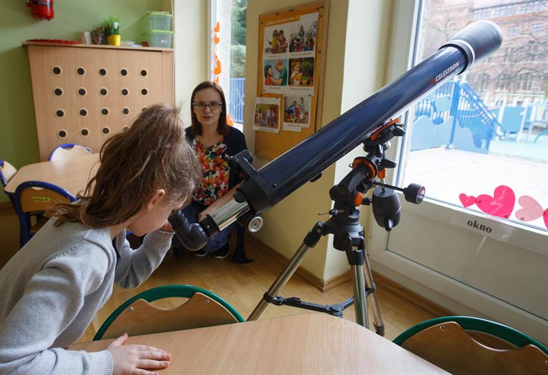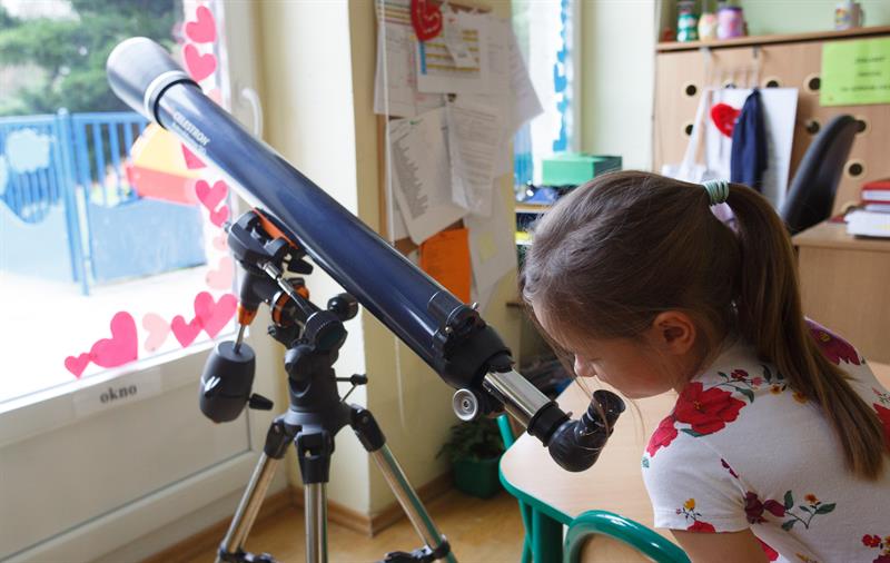 Na zdjęciach: Obserwując otoczenie przez teleskop, dzieci mogły poczuć się niczym Mikołaj Kopernik. Z kolei na stacji Aleksandra Dobry najmłodsi uczyli się wiosłowania.