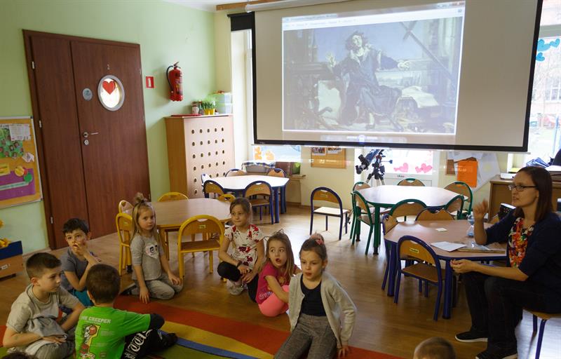 Dla maluchów przygotowane zostały stacje - każda z nich odpowiadała danej postaci. Na przystanku Fryderyka Chopina dzieci przez wspólną zabawę, taniec i granie poznały twórczość kompozytora. Na kolejnej stacji brały udział w zajęciach z malowania - tworzyły własne prace oraz poznały postać Jana Matejki. Natomiast dzięki jednemu z rodziców, który przekazał placówce teleskop, przedszkolaki mogły poczuć się niczym Mikołaj Kopernik. Przy pomocy urządzenia obserwowały m.in. gmach Urzędu Wojewódzkiego.