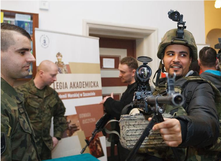 Żołnierze zaprezentowali broń w Akademii Morskiej w Szczecinie - to wydarzenie towarzyszyło inauguracji Legii Akademickiej, czyli szkoleń wojskowych dla studentów ochotników. Oprócz młodych ludzi z AM w szkoleniach wezmą udział także studenci z Uniwersytetu Szczecińskiego, Zachodniopomorskiego Uniwersytetu Technologicznego, Pomorskiego Uniwersytetu Medycznego oraz Wyższej Szkoły Bankowej.