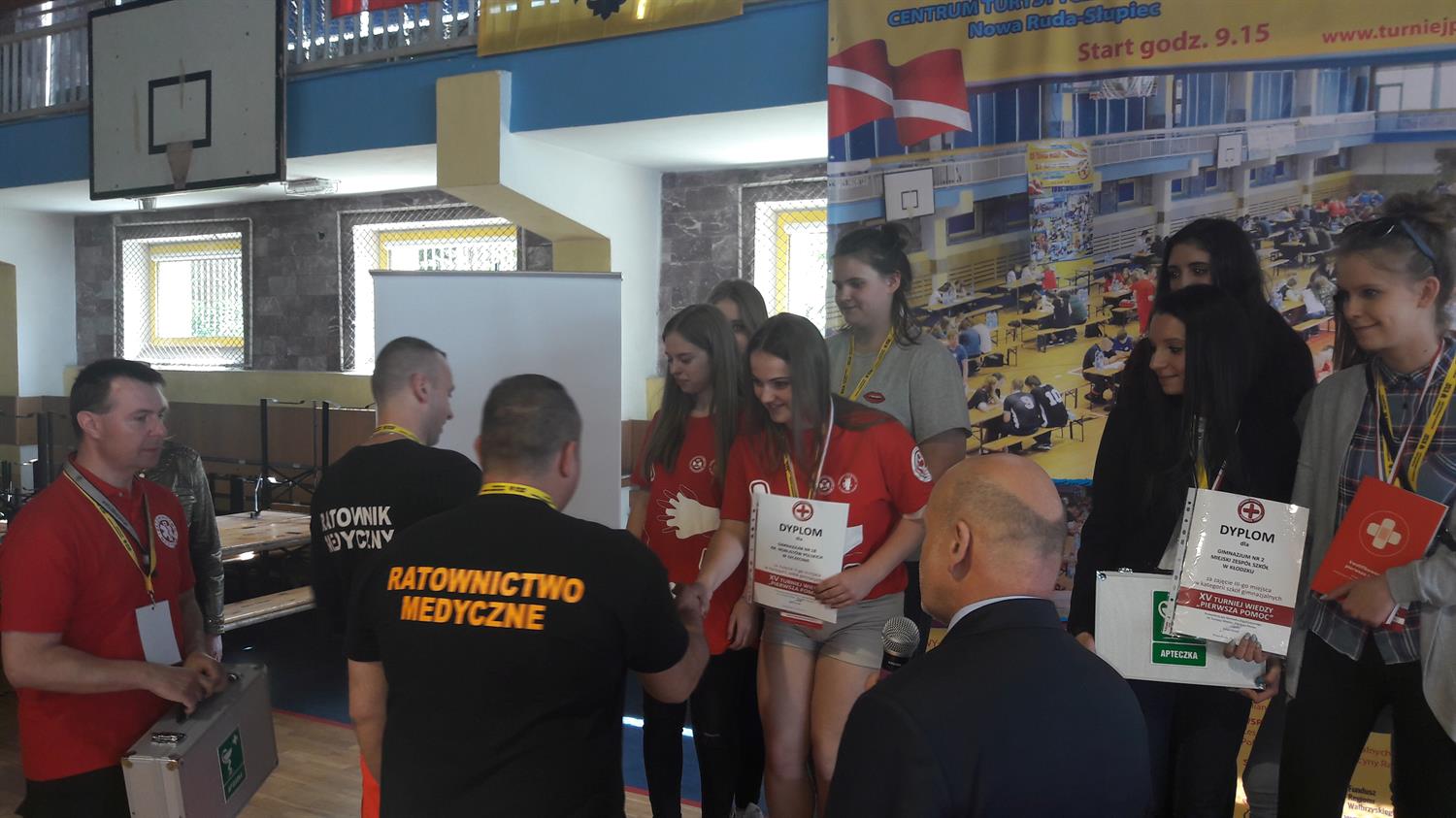 Julia Gadomska, Marta Klimczewska, Natalia Karasińska oraz Olga Rusinek, uczennice Gimnazjum nr 18 im. Noblistów Polskich w Szczecinie, zdobyły drugie miejsce w XV Ogólnopolskim Turnieju Wiedzy z Pierwszej Pomocy w Nowej Rudzie. Opiekunem uczennic jest Robert Wypart. Turniej składał się z dwóch części. Pierwsza to teoretyczny test z pytaniami zamkniętymi. W części praktycznej należało wykonać wylosowane czynności przeprowadzane podczas pierwszej pomocy.