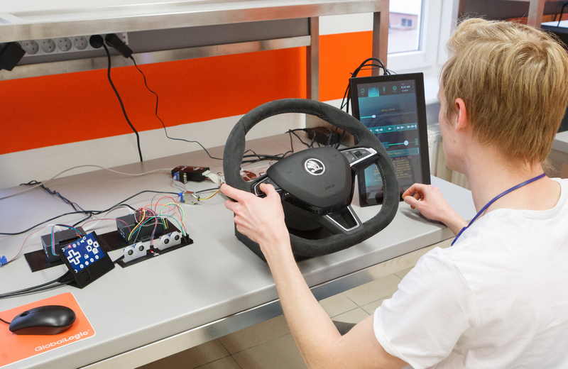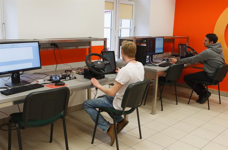 - Firma GlobalLogic wyposażyła laboratorium w niezbędny sprzęt. Pojedyncze stanowisko stanowi infrastrukturę odzwierciedlającą część elektroniki pokładowej pojazdu i oprogramowanie funkcjonujące w nowoczesnych samochodach. Studenci będą mieć możliwość nauki programowania układów elektronicznych samochodów, z przykładową implementacją różnego rodzaju sensorów (np. czujników zbliżeniowych, temperatury), czy prostego systemu multimedialnego sterowanego poprzez symulowaną jak i prawdziwą kierownicę. Poznają w praktyce protokoły używane do komunikacji między różnymi podzespołami elektronicznymi – dodaje Przemysław Kołaczyński, Menadżer GlobalLogic.
