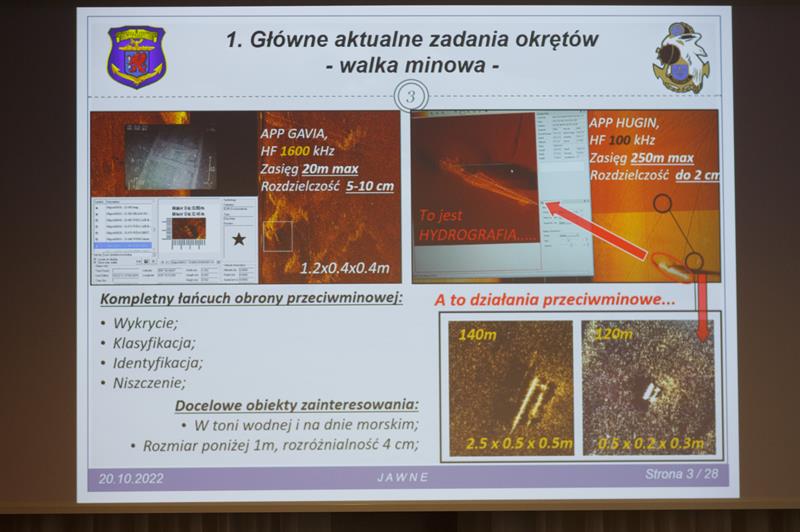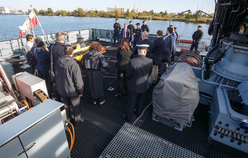 Przedstawiciele Marynarki Wojennej RP przybliżyli rolę nowych niszczycieli min typu „Kormoran” w ochronie bałtyckich instalacji. Uczestnicy konferencji mieli okazję do zwiedzenia tego okrętu, który zacumował przy szczecińskim bulwarze Chrobrego.