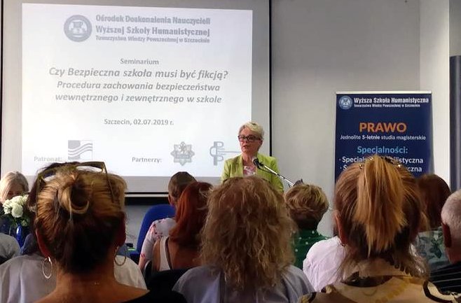 Seminarium dla nauczycieli, dyrektorów oraz pedagogów zachodniopomorskich szkół i placówek oświatowych "Czy bezpieczna szkoła musi być fikcją?" odbyło się we wtorek w Wyższej Szkole Humanistycznej Towarzystwa Wiedzy Powszechnej w Szczecinie. Zorganizował je Ośrodek Doskonalenia Nauczycieli WSH TWP w Szczecinie pod patronatem Zachodniopomorskiego Kuratorium Oświaty.