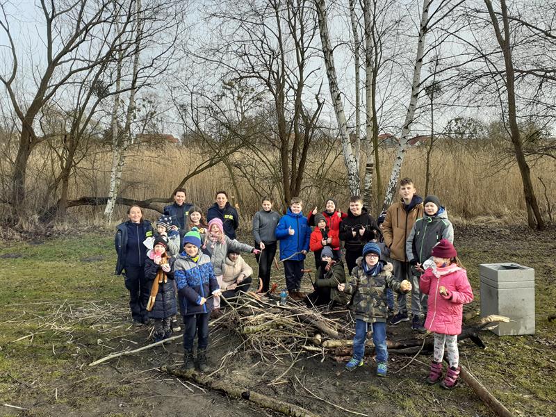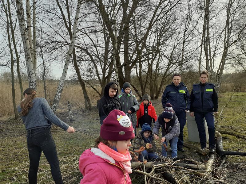 Takie zajęcia odbywały się m.in. w plenerze nad Jelenim Stawem. Tam właśnie zorganizowano ognisko z pieczeniem kiełbasek, grami i zabawami harcerskimi (m.in. przeciąganie liny, rzuty do celu) dla uczestników półkolonii ze Szkoły Podstawowej nr 59. Strażniczki szkolne z Referatu Profilaktyki przeprowadziły podczas tego plenerowego spotkania także prelekcję w formie zabaw interakcyjnych pod nazwą „Bezpieczne ferie” dla uczniów w wieku 7-15 lat.