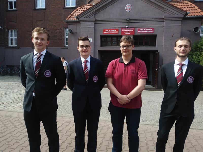 Na zdjęciu: Od lewej Maciej Maruszczak, zdobywca brązowego medalu na Międzynarodowej Olimpiadzie Fizycznej w Lizbonie i Łukasz Białas, zdobywca międzynarodowego wyróżnienia oraz Wojciech Kolesiński i Kornel Księżak, przyszli uczestnicy Międzynarodowej Olimpiady Astronomicznej w Pekinie.
