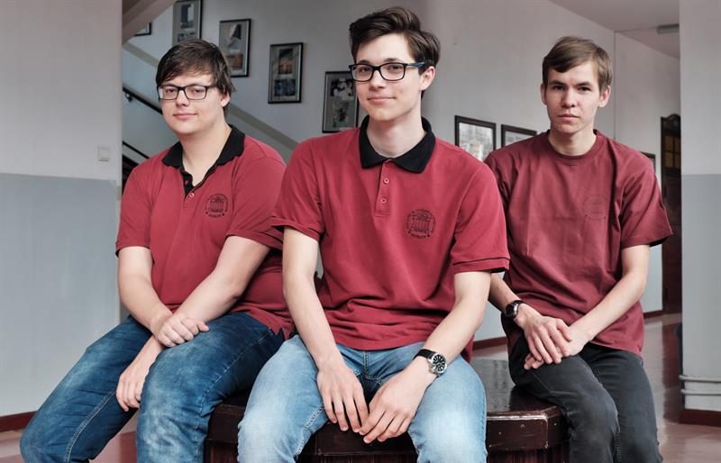 Na zdjęciu: Reprezentanci Polski w przedmiotowych olimpiadach międzynarodowych, od lewej: Wojciech Kolesiński (astronomia) i Michał Staniewski (informatyka) oraz Piotr Sawicki brązowy medalista Międzynarodowej Olimpiady Fizycznej