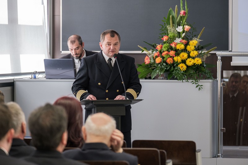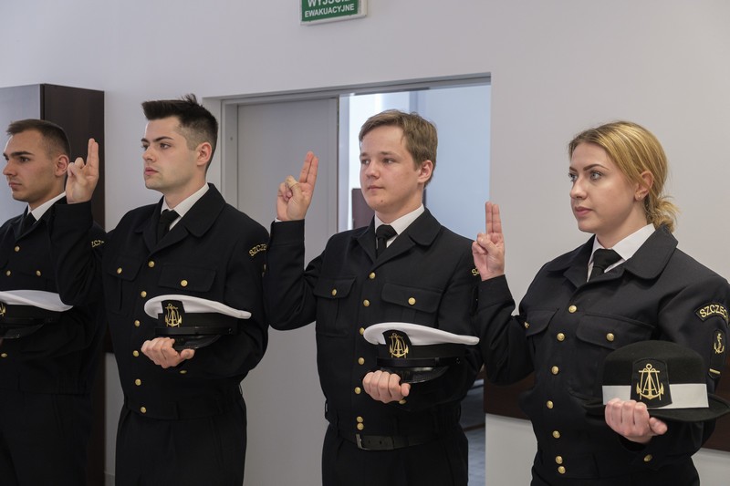 Następnie odbyło się się uroczyste ślubowanie na sztandar AM 14 studentów – członków nowo powołanego Koła Ligi Morskiej i Rzecznej przy tej uczelni.