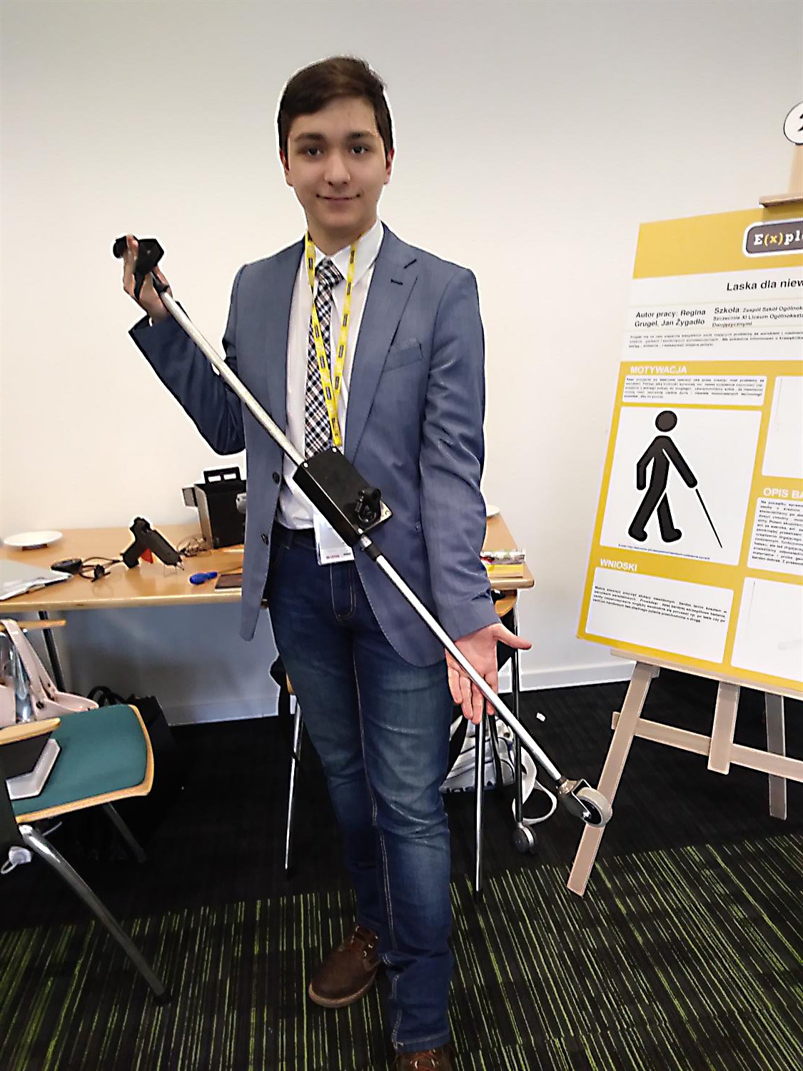 Regina Grugel i Jan Żygadło z XI LO z Oddziałami Dwujęzycznymi w Szczecinie stworzyli pod kierunkiem nauczycielki Beaty Zymek laskę dla niewidomych. Jej działanie polega na tym, że rączka wibruje, gdy laska zbliża się do przeszkody.