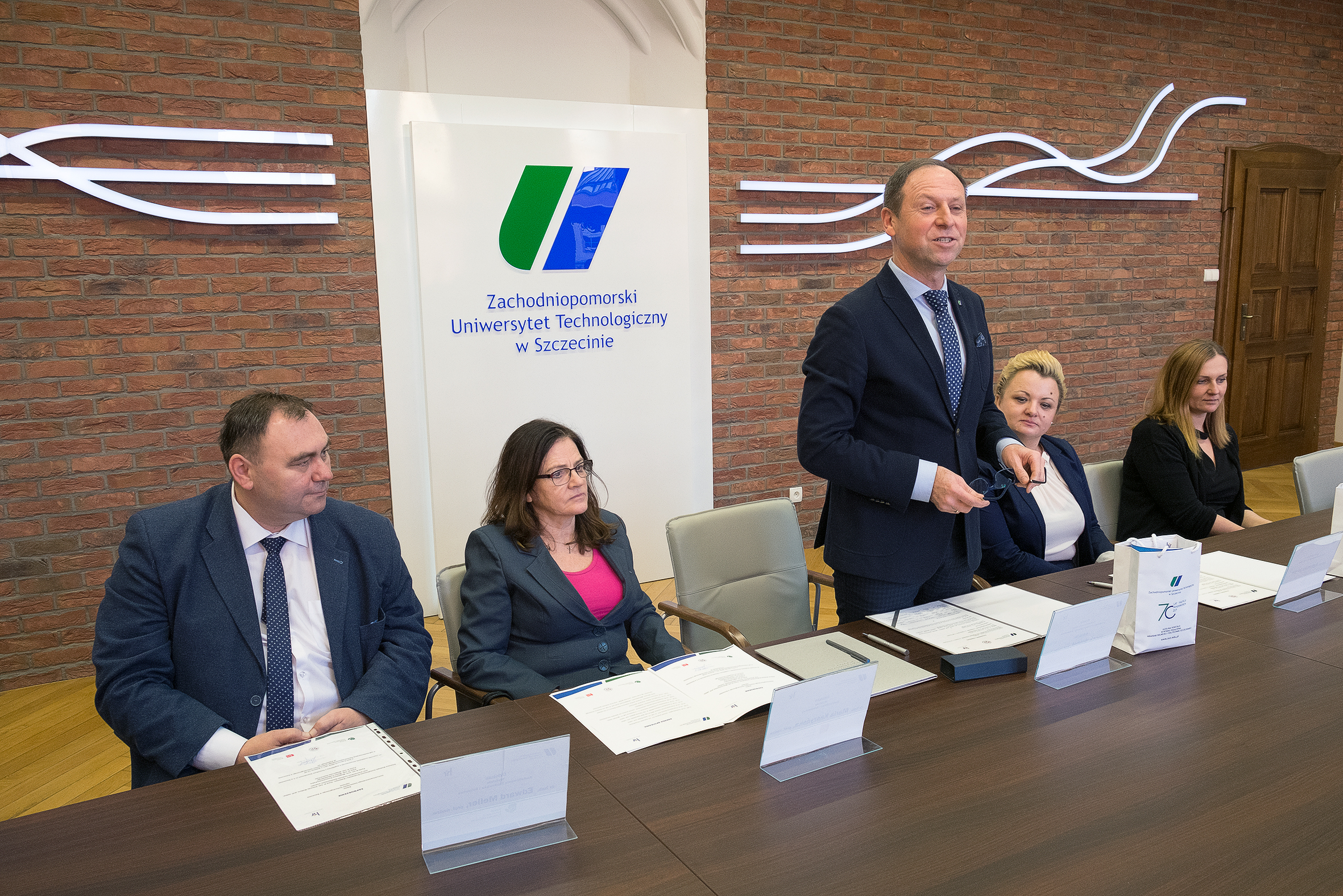 W uroczystym podpisaniu umowy uczestniczyli również dziekan WBiA dr hab. inż. Maria Kaszyńska prof. nadzw. i dziekan WKŚiR dr hab. inż. Edward Meller prof.nadzw oraz pracownicy ZUT, nauczyciele i uczniowie ZSB.