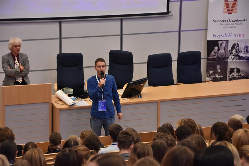 - Do Szczecina przyjechała w tym roku rekordowa liczba młodzieży - mówi Tomasz Obiała. - To największa z dotychczasowych edycji, gościliśmy ponad 240 uczniów. Obecni byli przedstawiciele samorządów niemal ze wszystkich szkół ponadpodstawowych w Szczecinie, odwiedziły nas również nastolatki z regionu: Goleniowa, Kołobrzegu, Stargardu, Choszczna, ale również przyjechali uczniowie z odległych miejsc w kraju: Poznania, Legnicy, Pilicy, Konina, Częstochowy, Miastka. Największym zainteresowaniem cieszył się wykład Macieja Strączyńskiego, sędziego Sądu Okręgowego w Szczecinie na Uniwersytecie Szczecińskim. Na spotkanie pod nazwą „Wszystko, co chcieliście wiedzieć o sądzeniu, a baliście się zapytać" przewidziane było 70 minut, jednak młodzież była bardzo zainteresowana zagadnieniami omawianymi przez sędziego do tego stopnia, że pytań było bez liku i przeciągnęło się do ponad dwóch godzin.