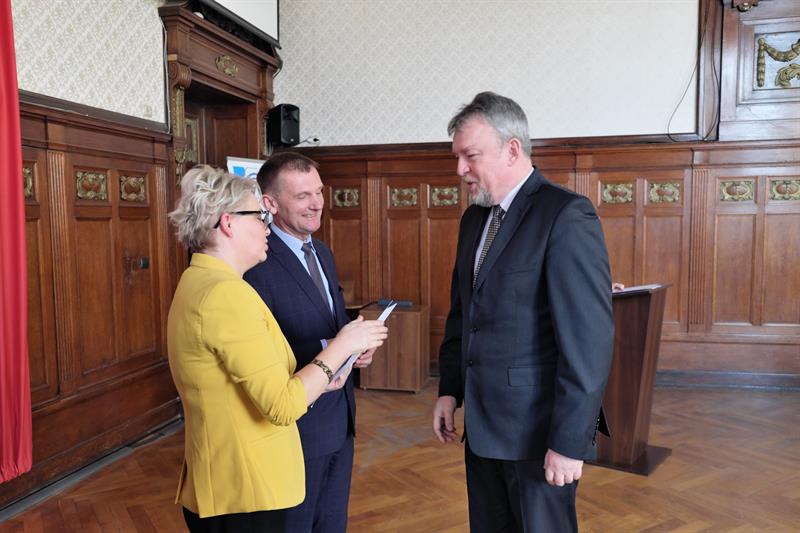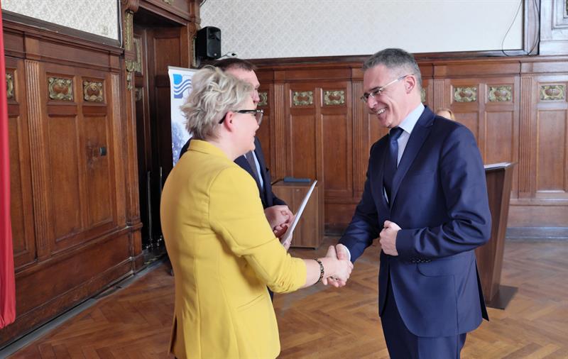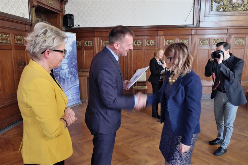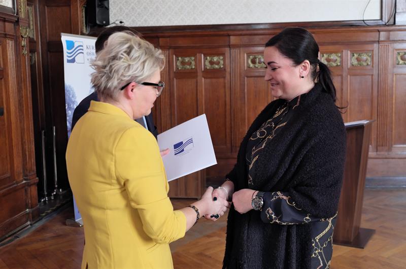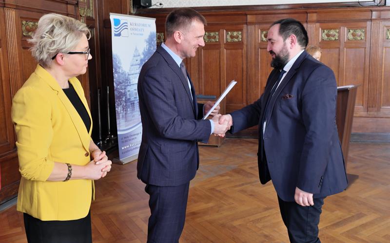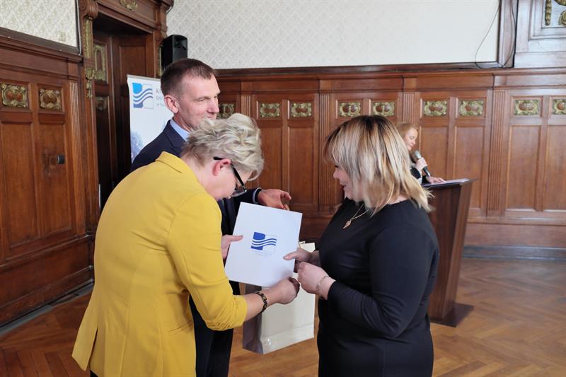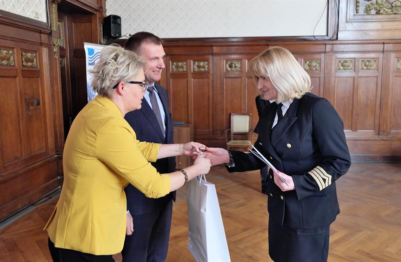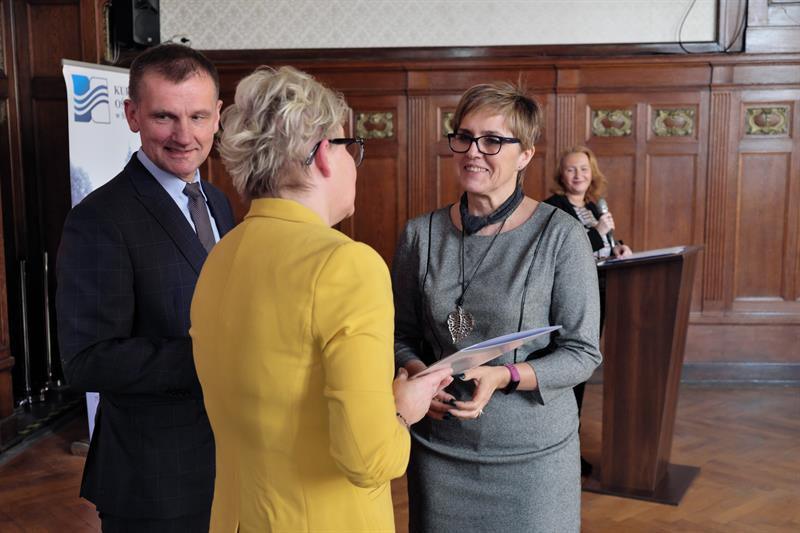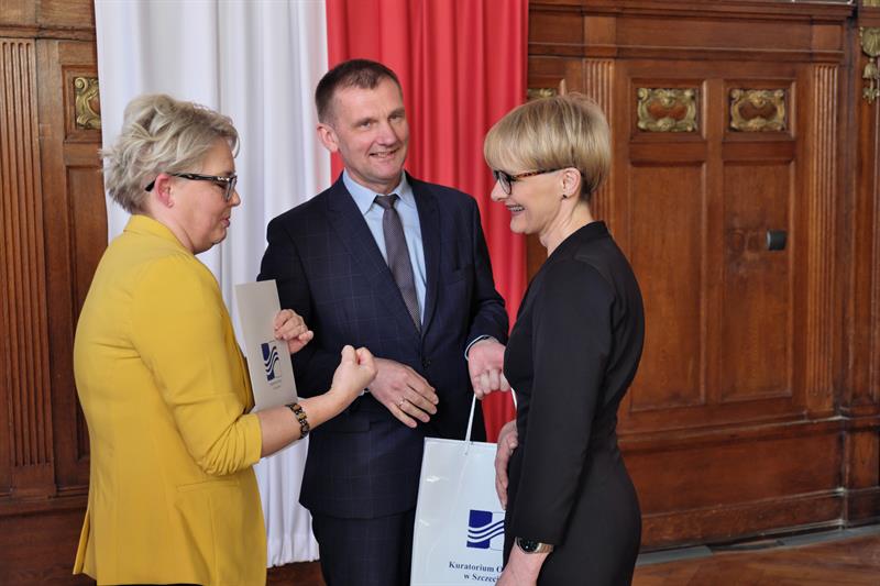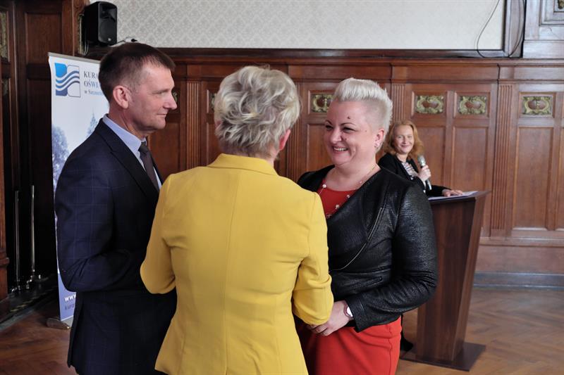 Na zdjęciu głównym: Dyrektor Zachodniopomorskiego Centrum Edukacji Morskiej i Politechnicznej w Szczecinie Elżbieta Moskal odbiera gratulacje z rąk zachodniopomorskiej kurator Magdaleny Zarębskiej-Kuleszy,