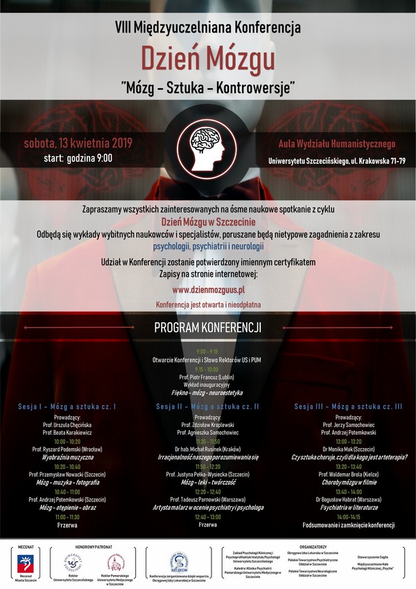 Wydarzenie organizowane jest wspólnie przez: Zakład Psychologii Klinicznej i Psychoprofilaktyki Instytutu Psychologii Uniwersytetu Szczecińskiego, Katedrę i Klinikę Psychiatrii Pomorskiego Uniwersytetu Medycznego, Okręgową Izbę Lekarską w Szczecinie, Polskie Towarzystwo Neurologiczne Oddział w Szczecinie, Polskie Towarzystwo Psychiatryczne Oddział w Szczecinie oraz Stowarzyszenie Cogito.