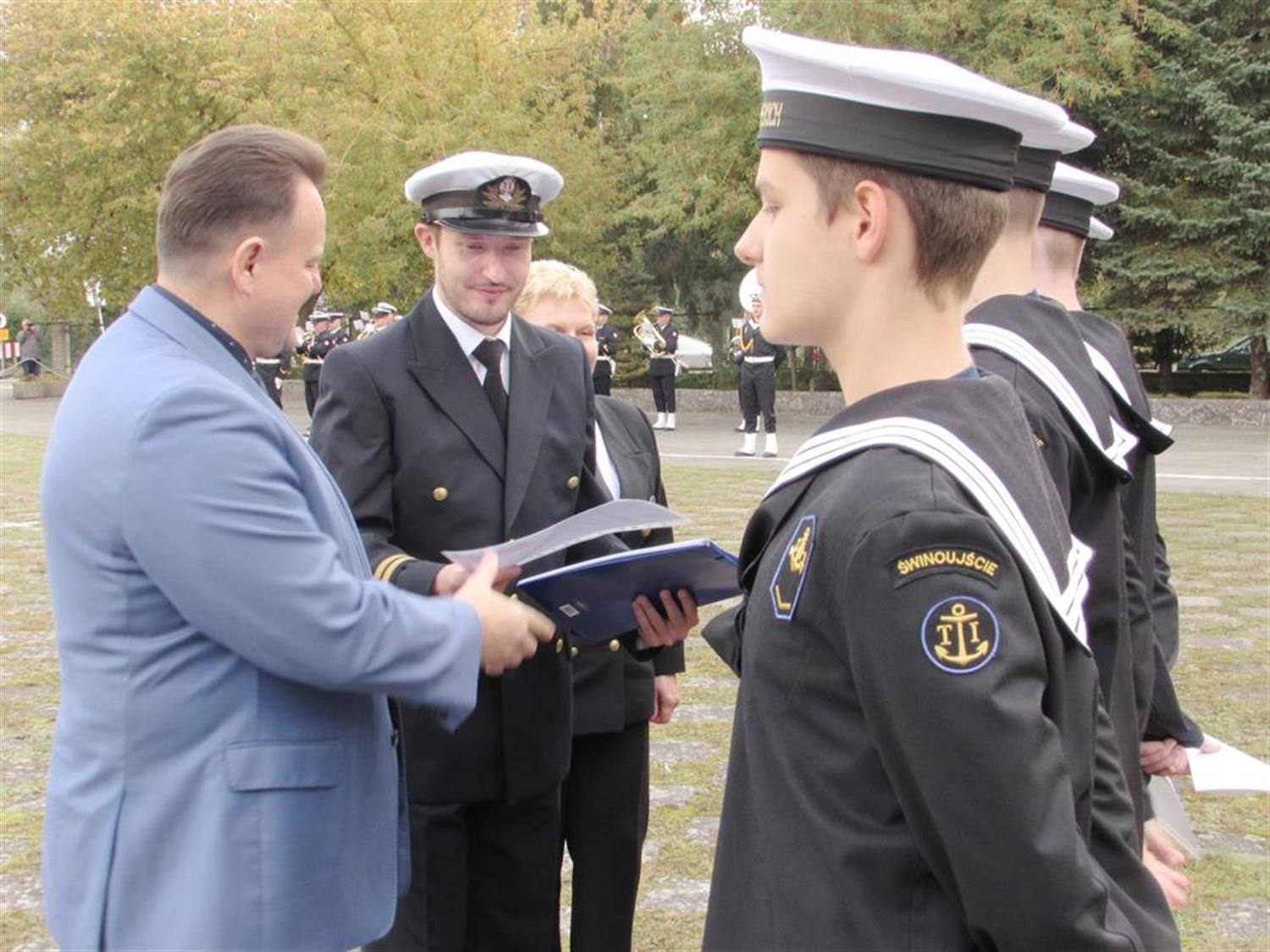 Uroczyste ślubowanie złożyło w sobotę (8 października) ponad 120 uczniów pierwszych klas świnoujskiego Zespołu Szkół Morskich im. Eugeniusza Kwiatkowskiego. To przyszli nawigatorzy, mechanicy okrętowi, logistycy oraz informatycy. Muzyczną oprawę uroczystości zapewniła Orkiestra Wojskowa w Świnoujściu.