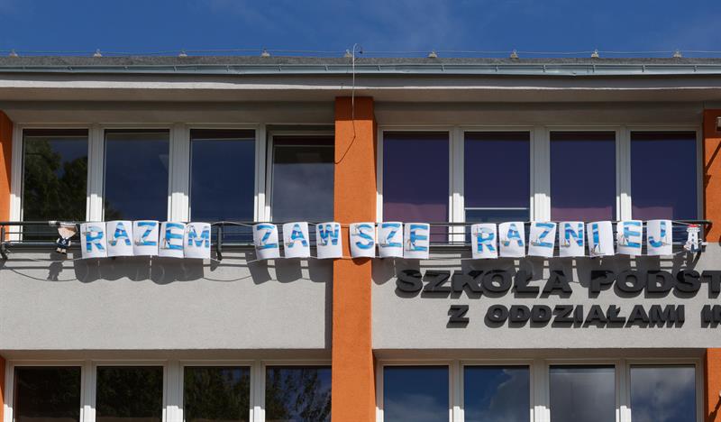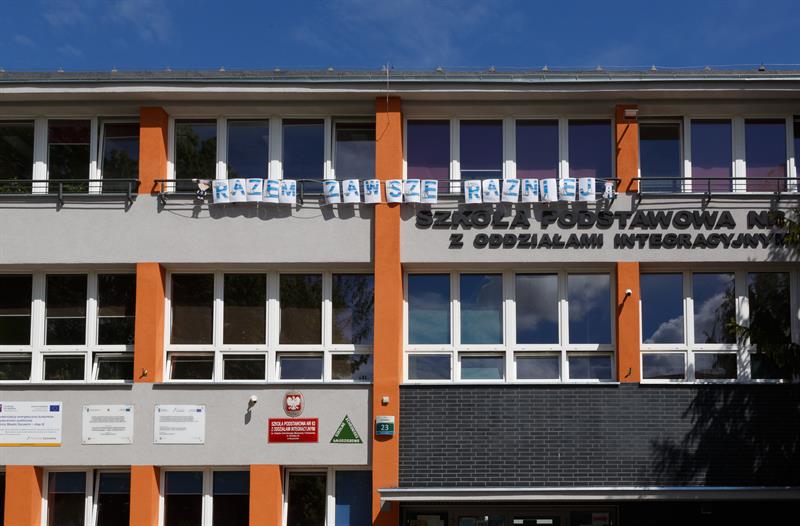 Oczywiście pandemia trwa, więc nauka jest prowadzona hybrydowo, uczniowie na zmiany mają lekcje zdalne i stacjonarne. Ci, którzy obecnie uczą się w domach online, do szkoły przyjdą w przyszłym tygodniu.