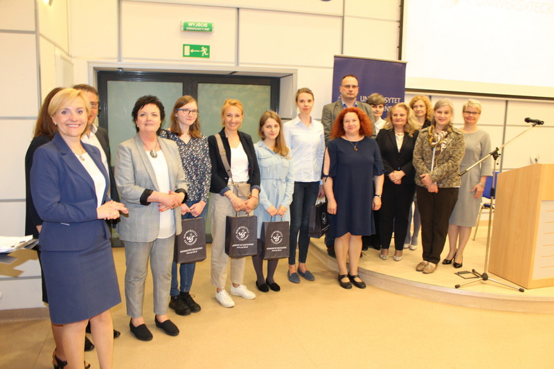 Na zdjęciu: Zwycięzcom nagrody wręczyli: prof. dr hab. Waldemar Gos – prorektor ds. finansów i rozwoju US, prof. dr hab. Ewa Kołodziejek oraz dr hab. Jolanta Ignatowicz-Skowrońska, prof. US – dyrektor Instytutu Polonistyki i Kulturoznawstwa.