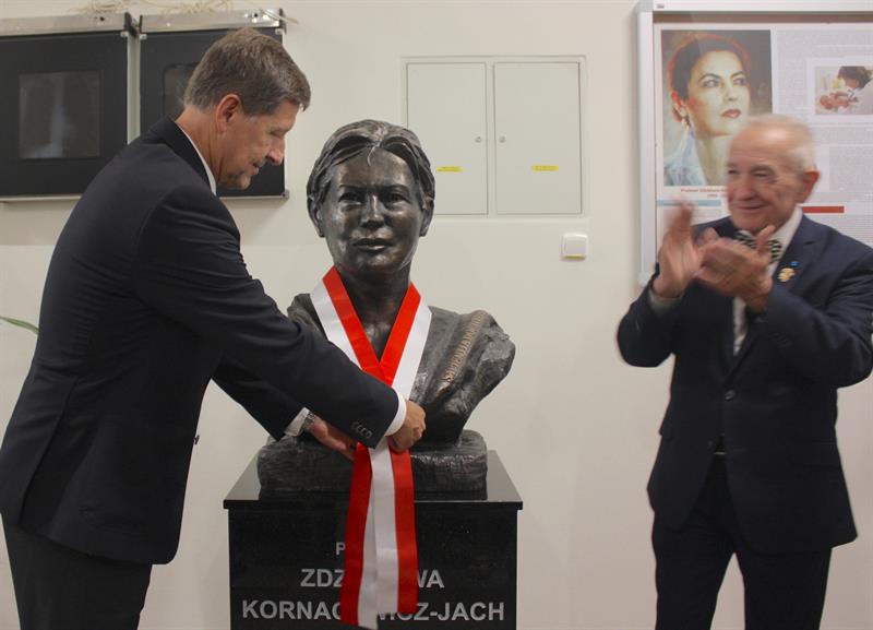 W gmachu Pomorskiego Uniwersytetu Medycznego przy ul. Rybackiej w Szczecinie stanął pomnik prof. Zdzisławy Kornacewicz-Jach. W ten godny sposób uczczono pamięć zmarłej w 2020 r. wieloletniej kierownik Kliniki Kardiologii.