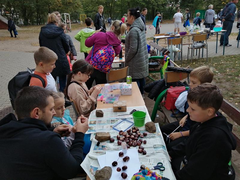 Atrakcje dla uczestników festynu przygotowali uczniowie wraz z rodzicami, nauczycielami i pracownikami szkoły. Najmłodsi chętnie brali udział w rozmaitych konkurencjach i warsztatach. Przy stoiskach wykonywali sobie brokatowe tatuaże, bransoletki, zawieszki z koralików i kolorowe warkoczyki. Nieco starsi mogli poznać zasady udzielana pierwszej pomocy. - Cieszy nas, że są z nami także nasi absolwenci, harcerze, którzy na fantomie prezentują zasady postępowania w sytuacji zagrożenia życia - mówił wicedyrektor szkoły Przemysław Landowski.