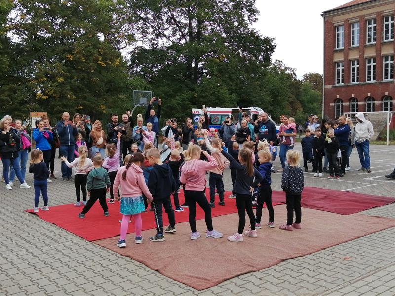 Uczniowie, przedszkolaki oraz ich rodziny znakomicie bawili się podczas imprezy i nawet kapryśna pogoda nie zepsuła im humorów.